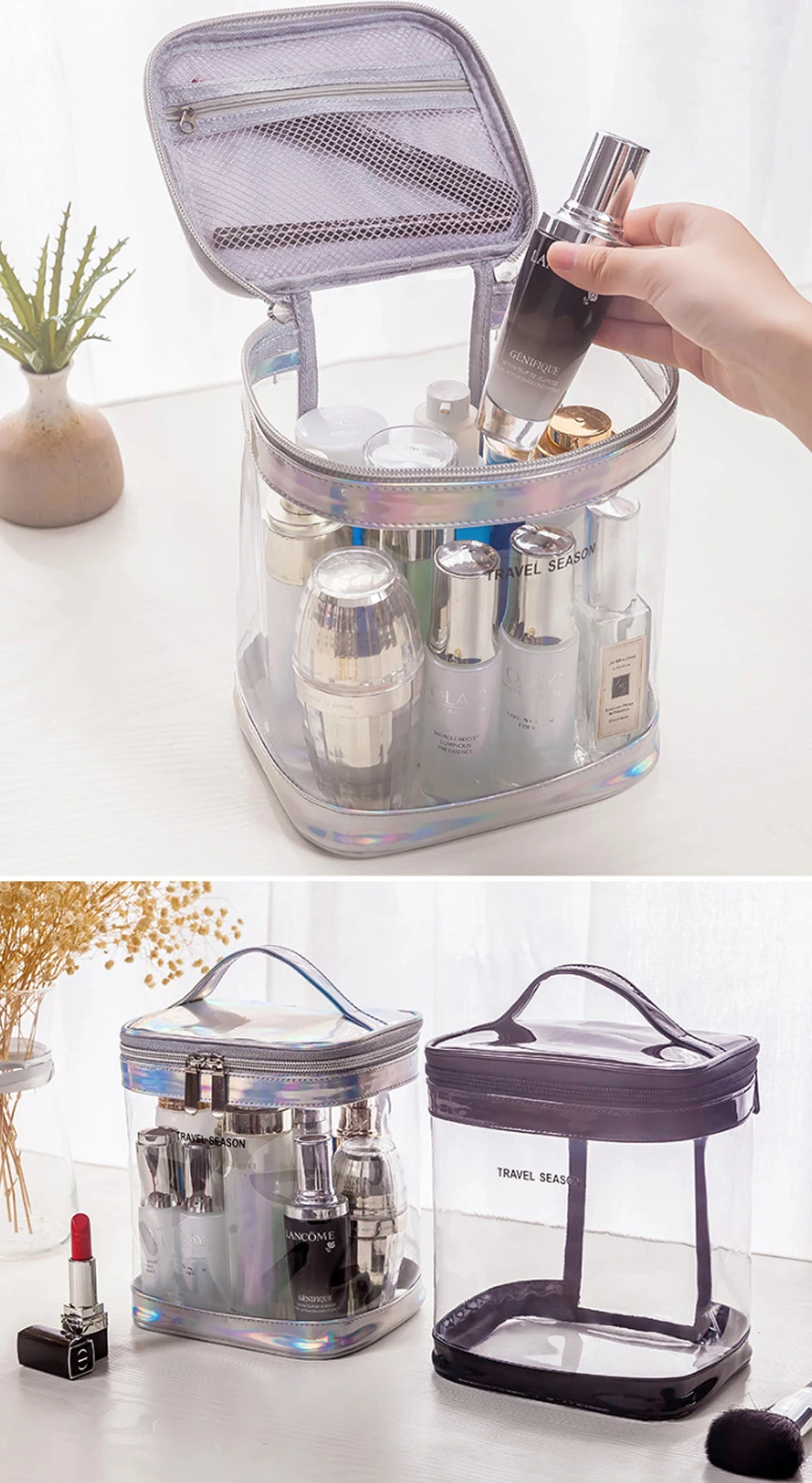 Прозрачная дорожная Водонепроницаемая косметичка ПВХ на молнии прозрачная сумка для хранения туалетных принадлежностей Сумочка, косметичка