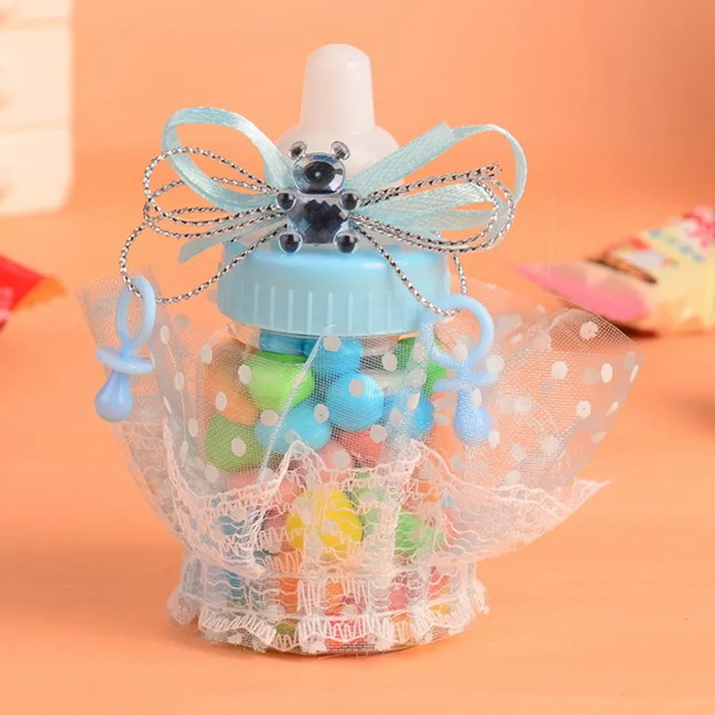 Действительно милые пластиковые бутылочки для кормления детей, конфетные пакеты, украшенные бантом из ленты, кружевом и органзой