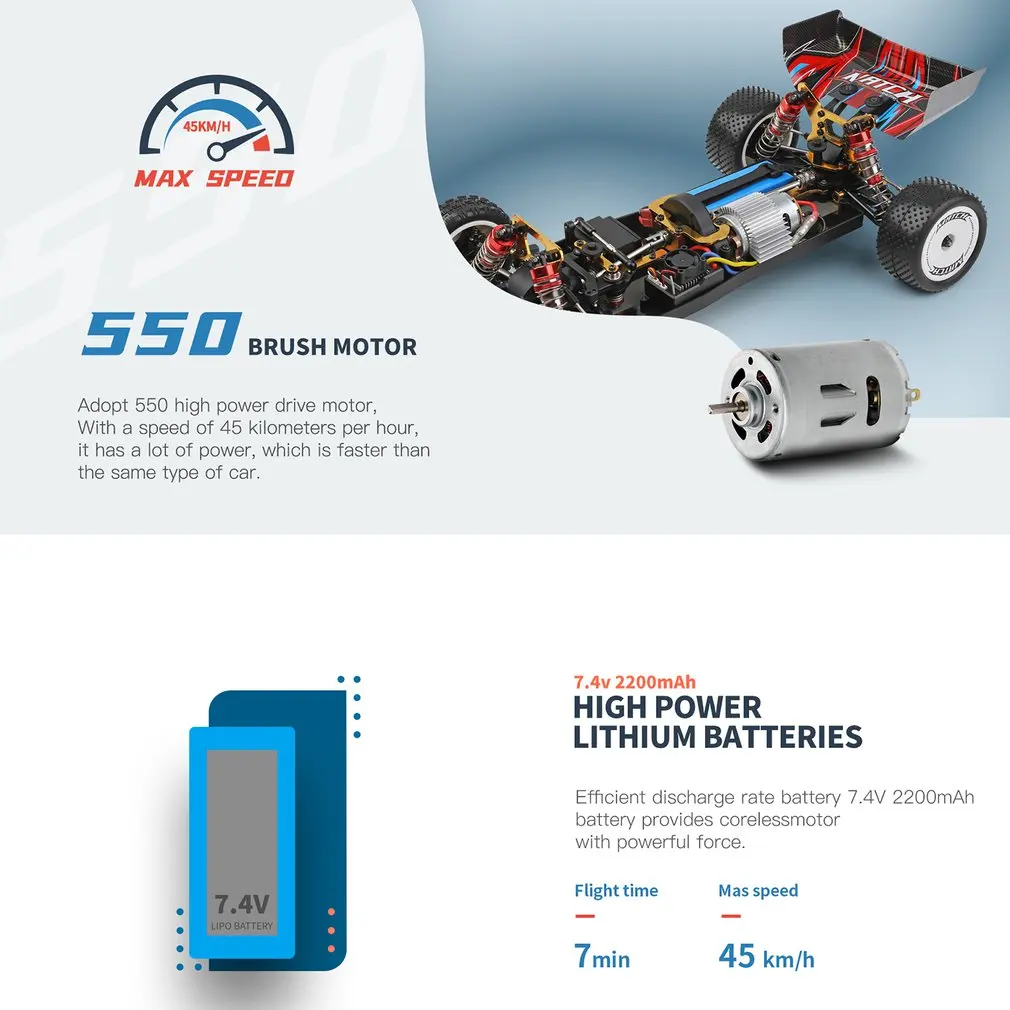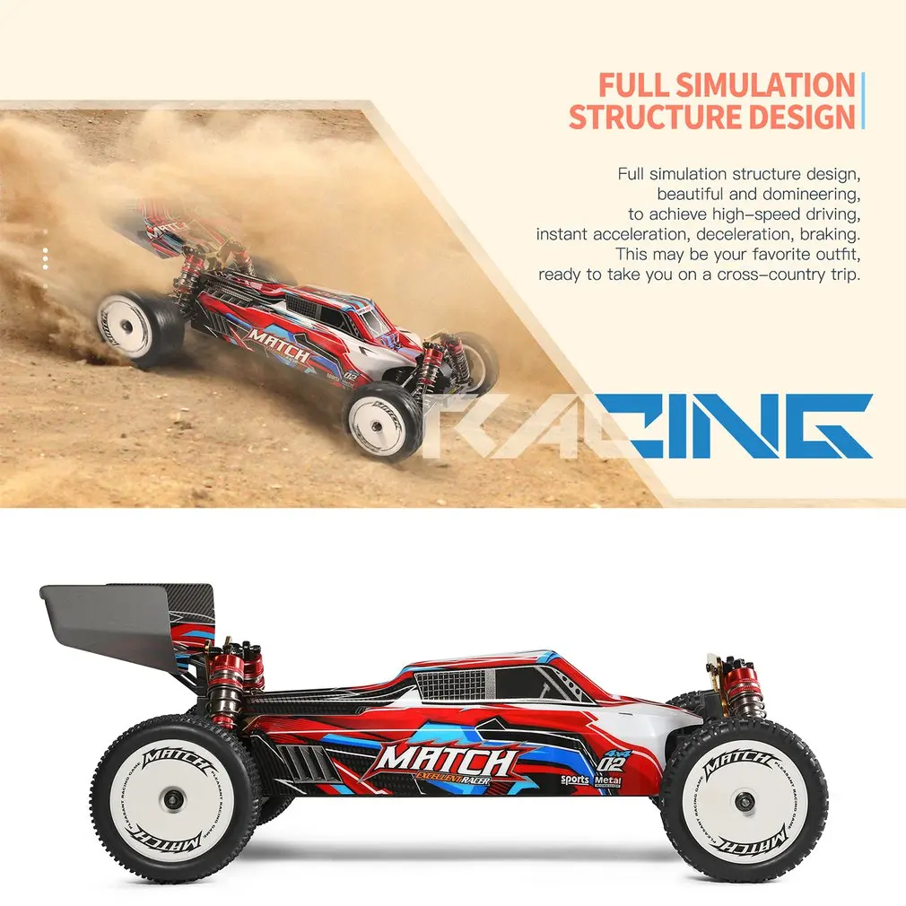 1. Full simulation structure design: Full real RC car control feeling, realizing high-speed driving, instant acceleration, deceleration and braking. Independent front and rear suspension for smooth cornering and stable body posture.