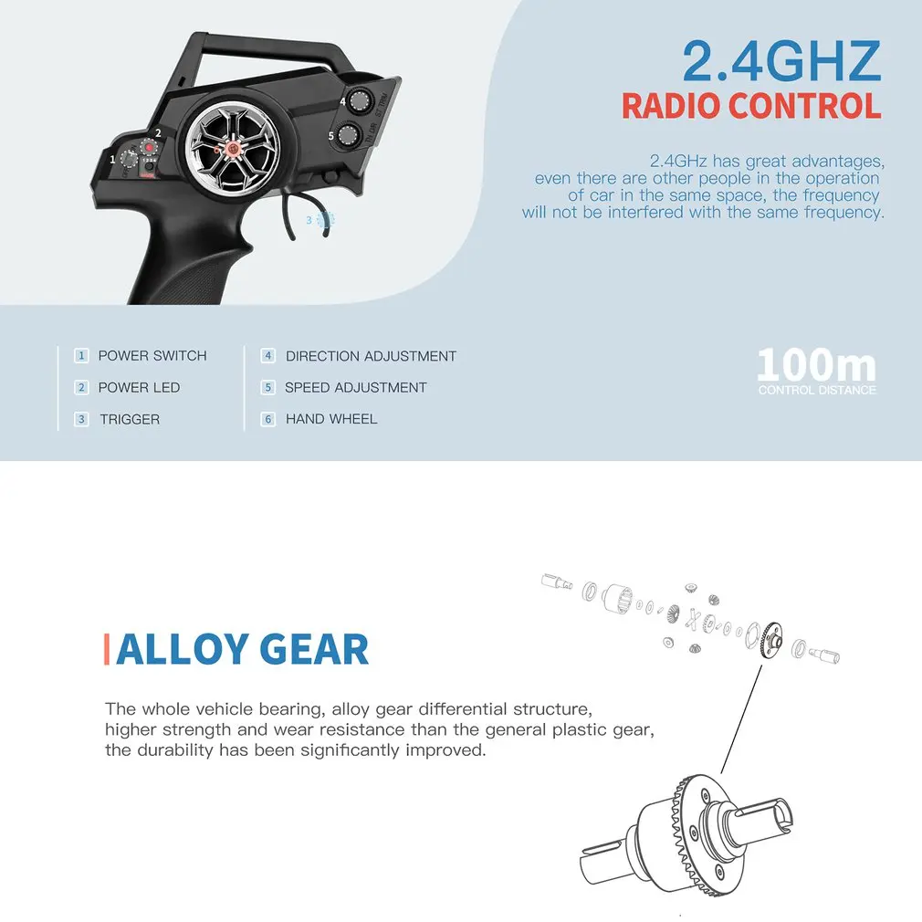 5. More stable: The whole vehicle bearing and alloy gear differential structure make the model car run more smoothly and stably.