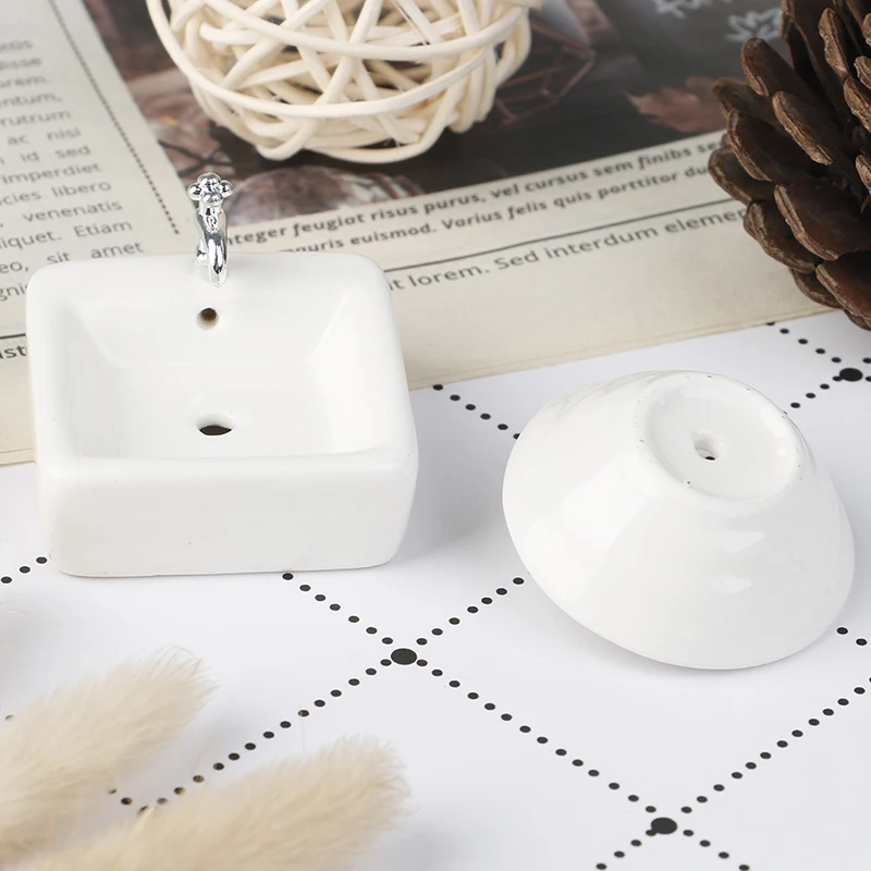 Размеры: квадратный умывальник: 3,5*3,5*2,5 см, Круглый умывальник: диаметр: 4 см, высота: 2 см