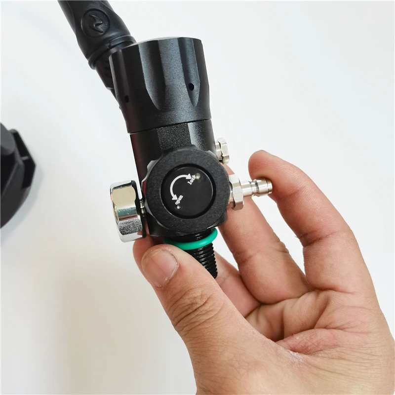 Клапан снижения давления первого уровня + кислородный баллон 1 л (не входит в комплект) + трубка среднего давления (не входит в комплект) + вторичный дыхательный клапан (не входит в комплект)