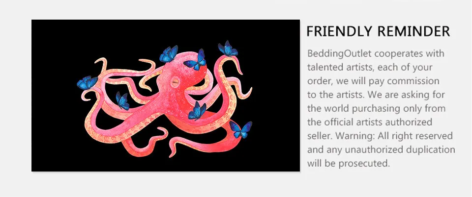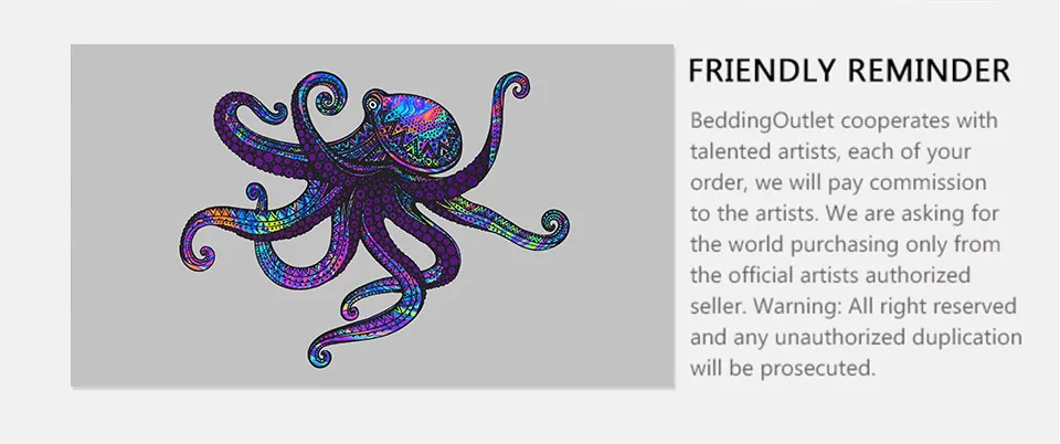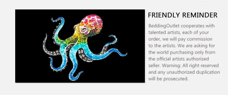 Q: Can I dropship from you?A: The advantages of drop shipping from us: Dropship like a boss, others leave to us.1. “BeddingOutlet” is a famous home textiles brand. We are a reliable manufacturer, with a fast service, high quality products and competitive prices; it’s very likely that you will make cash.2. We offer safe dropshipping and will ship for you without invoice, marketing materials or other information.3. We offer customization and exclusive product service for you better to enhance and protect your business. There is no MOQ.4. We have a fulfillment team and warehouses in many countries.5. We can fulfill order via CSV or XLS File.6.Reach to a certain amount of dropship orders, we provide free order for you.If you need pictures without watermark, you can download on the product description page. If there are no suitable pictures, please contact our customer service.We're very eager to assist and want to build a strong business partnership with you.Q: Which size is suitable for me?A: There is size table on the Product Description page, please measure the size of your quilt, and select the ideal size. If you are not sure of it, contact our customer service. Any size customize is accepted.Q: Can I add extra flat sheet for the bedding set?A: If you need solid color sheet, please search “Solid Color Bed Sheet” in our store.We also provide the printed sheet to match the duvet cover set,The sheet price is following: Twin: $17 Full: $22 Queen: $26 King: $29 Cal King: $35Q: Can I get more discount?A: Thanks for your interest in our items. There are fixed amount off discount and coupons in our store, you can use it if you meet the conditions. We can’t offer more discount since our price listed has been carefully calculated and leaves limited profit already, hope you can understand.Q: Can I customize the product?A: We can customize design and size for most home textiles items in our store. Including: Duvet cover, pillowcase, pillow, tapestry, blanket, beach towel, cushion cover and etc.Please contact our customer service for more information.Q: Why Russian customers need to fill in passport information?A: When you making order, your passport information will be required by the local customs in Russia. Please be assured that your information will never be told to the third party, and it's safe for you to provide information on AliExpress.Q: When will my order be shipped?A: Totally we need to arrange your package within 1-3 days, no more than 5days. If it’s an urgent order, please make remarks when you place order, or contact our customer service to urge for you.Q: When will the package arrive?A: The packages typically arrive in 7~20 business days, not counting holidays and weekends. You can view the shipping time picture of your country at the end of this page.Q: Delayed logistics in Brazil, Mexico and Chile.A: If your parcel has arrived to your country, hope you can give a little more time, since the postal system in Brazil, Mexico and Chile is usually slow. If you still do not get it within 2 weeks, please contact our customer service.Q:I’m not satisfied with the item.A: Refund or Return as you wish!If you’re not satisfied with our product, please contact our customer service freely, we can talk to fix the problem and give you a satisfied answer.Q: What’s your return policy?A: Our return policy: if it’s the quality problem of the goods, or goods send error, we offer full refund; If buyers bought the wrong goods, the buyer need to pay the freight returned goods, there can also be a full refund.Q: When will I receive the refund?A: The refunds will be proceeding within 3-15 days by Aliexpress. If you have some problems with it, please contact with the Alipexpress customer service! Thanks.All messages will be replied within 24 hours, your happy service guaranteed in Beddingoutlet.