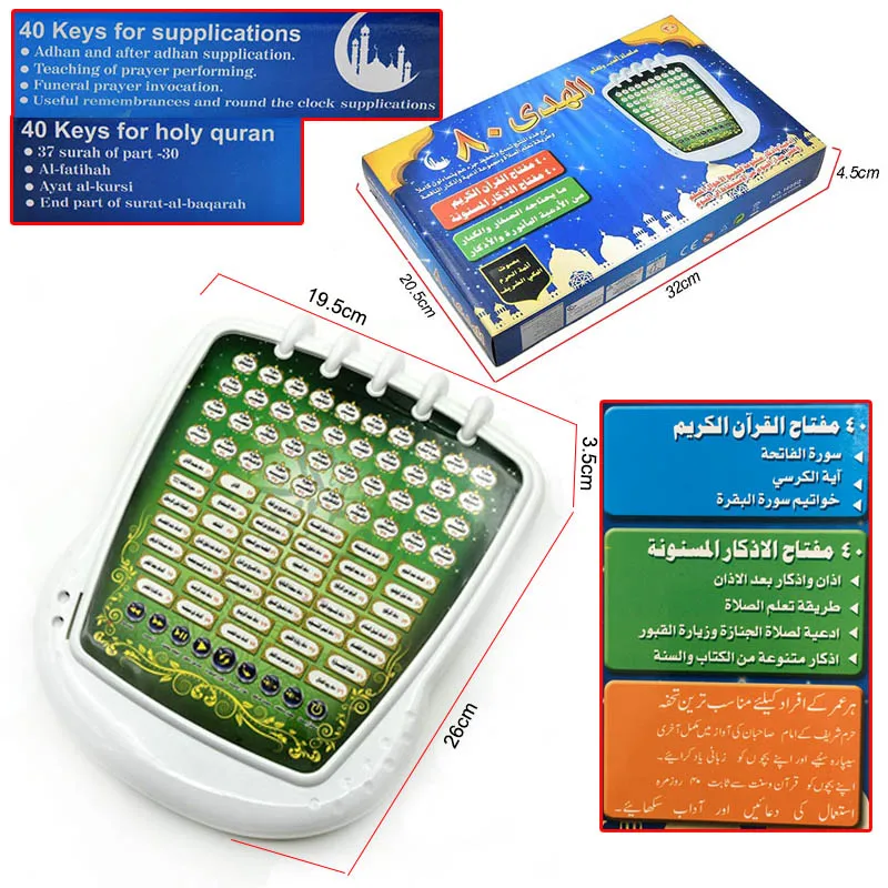 Функция: Аль-Худа 80 С полной частью-30 Холли Коран и многое другое. Мы гордимся нашим новым продуктом... Подходит для всех возрастов, Ценный подарок для ваших детей. 40 ключей для holly quran 30 Сура части-30 Аль-Фатиха Аят аль-КУРСИ Конечная часть surat-al-baqarah
