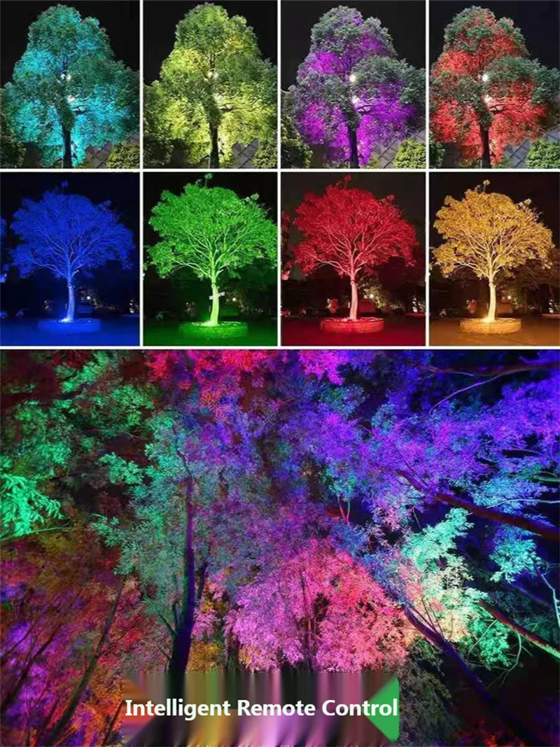 Солнечный красочный прожектор, светодиодный светсветильник льник для дерева, ландшафсветильник свет, прожексветильник для сада, паркосветильник, газонная лампа IP66, водонепроницаемая, 100 Вт
