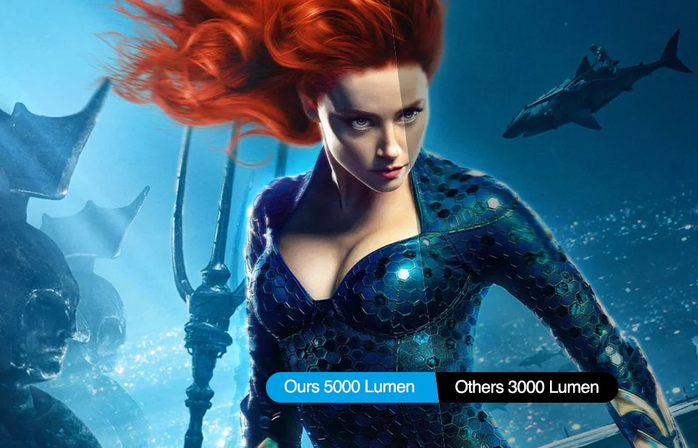 Яркость лампы составляет 5000 люмен, поэтому то, что она показывает, ярче. Она может поддерживать высокое разрешение, вы можете наслаждаться фильмами лучше.