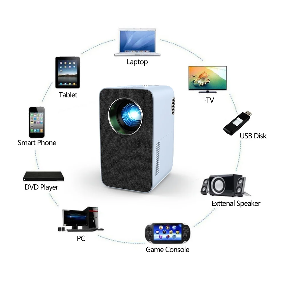 Он может подключаться к смартфону, планшету, ноутбуку и т. д. вы можете смотреть фильмы, играть в игры с помощью этого проектора, вы можете наслаждаться вами сами.