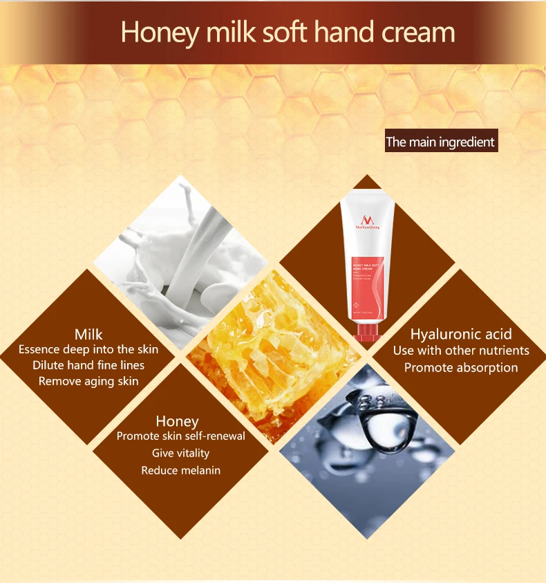 Молоко с медом, интеграция различных питательных увлажняющих факторов, мягкое Увлажнение Рук, восстановление сухости и шероховатости, увлажнение, улучшение морщин рук, потрескивание, смягчение лица кожи, «рука», поддержка второго лица, такие как qianrou кремовый гладкий.