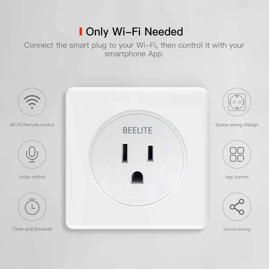 Не требуется концентратор и не нужно платить за услугу подписки. Просто подключите ваши электрические приборы в Beelite умная розетка и Подключитесь к приложение smart Life/приложение Tuya в соответствии с защищенной 2,4 ГГц сети Wi-Fi.