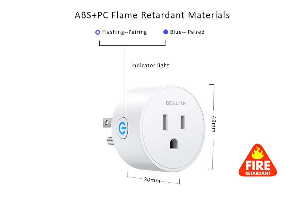 В изделии используется высококачественный огнестойкий материал ABS + PC V0, который позволяет избежать пожарной опасности и обеспечить безопасность вашего дома и членов семьи. Кроме того, умная вилка оснащена функцией защиты от перегрузки. Когда ток превышает порог, он автоматически отключится, чтобы предотвратить чрезмерный ток от повреждения вставленного устройства