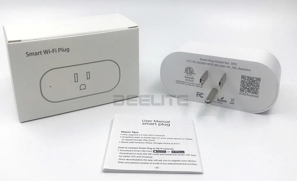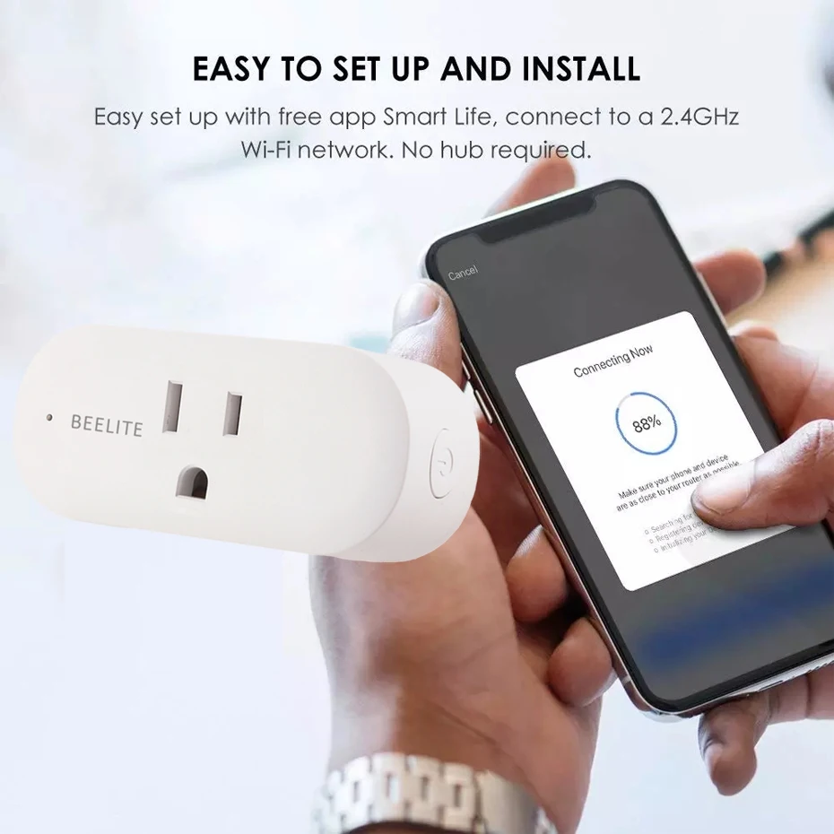 【Легко установить 】Не требуется концентратор и не нужно платить за услугу подписки. Просто подключите ваши электрические приборы в Beelite умная розетка и Подключитесь к приложение smart Life/приложение Tuya в соответствии с защищенной 2,4 ГГц сети Wi-Fi.