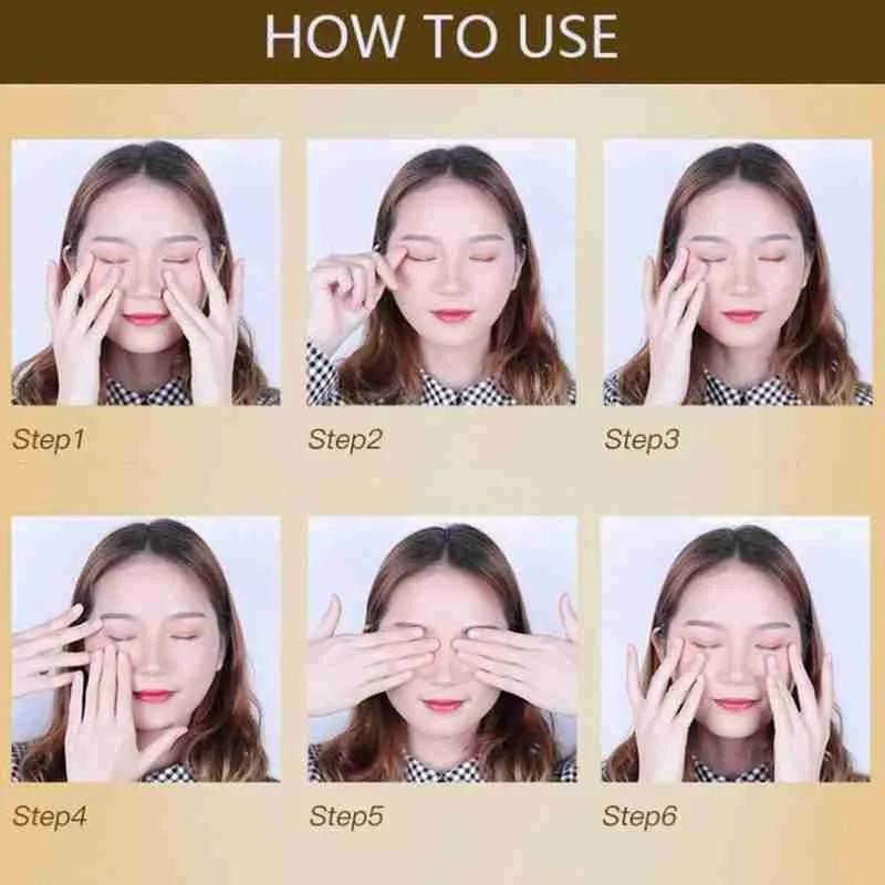 1. Аккуратно Возьмите 2 мм соевого крема для глаз на верхние и нижние глаза, лицо и четыре угла