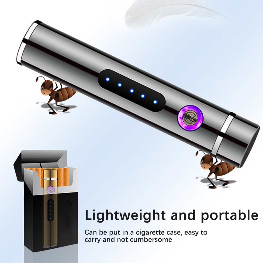 1. Мини двойная дуга, светодиодный дисплей для зарядки, компактный и изысканный, легко носить с собой.