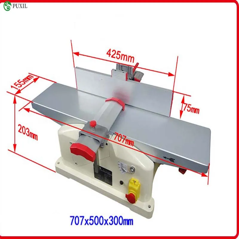 Напряжение: 220 В Частота: 50 Гц Мощность: 1280 Вт Диапазон подачи: 0-3 мм Скорость перепечати: 9000 об/мин Ширина обработки: 156 мм Размер стола: 156*330 мм Разряд: 156*340 мм Размер планера: 156*16,5*3 мм Вес нетто: 16,5 кг