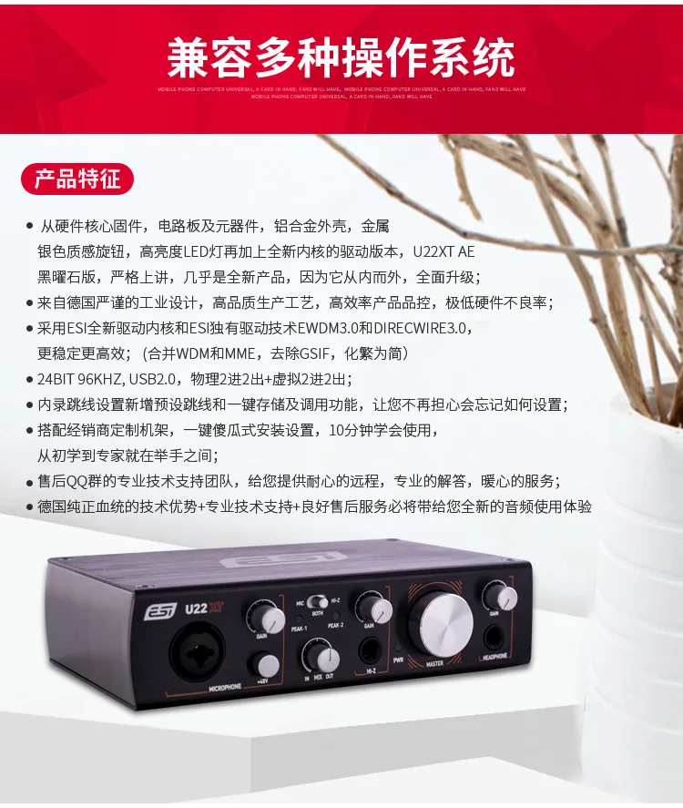 В U22 XT обеспечивает максимальную гибкость, USB питание по шине, и без потерь Профессиональный 24-битное звуковое воспроизведение с качеством.