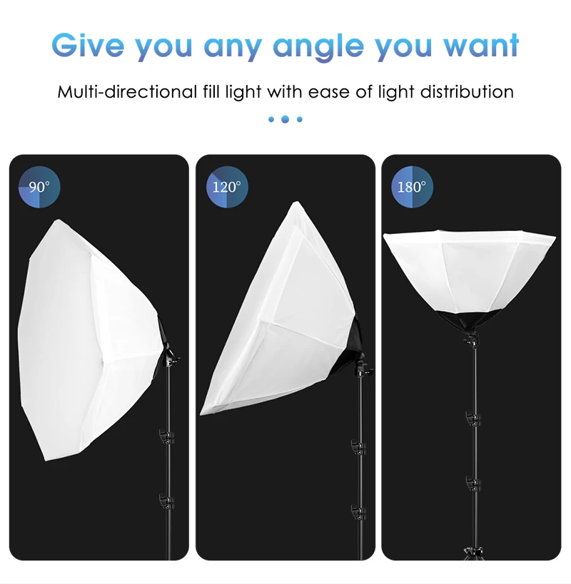❥ 70cm Softbox: White soft cloth,evenly soften light; Reflective silver inner, minimize light reduction; Safe and non-toxic polyester fiber,4 flexible connecting rods.