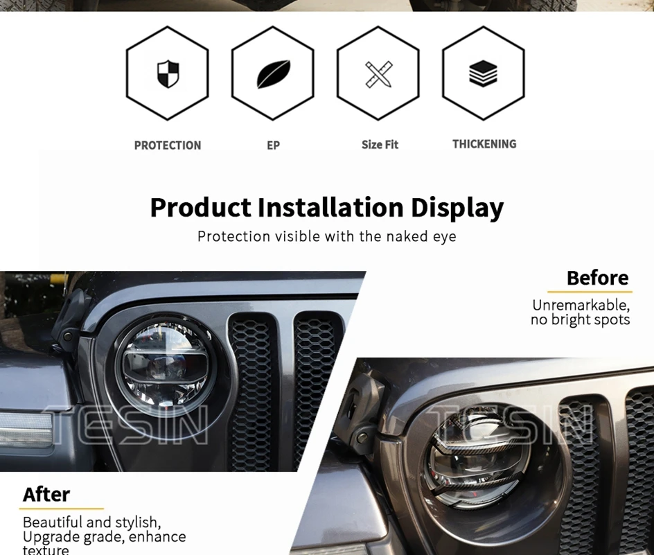 Колпаки для фар TESIN, автомобильный передний головной светильник, задний светильник, крышка для задней лампы, защитная крышка, аксессуары для Jeep Wrangler JL 2018 Up