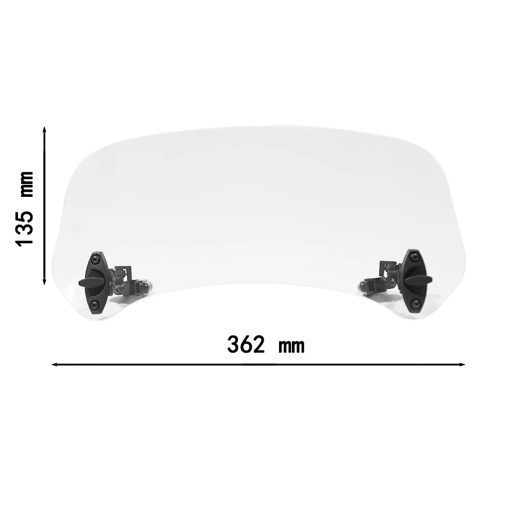 1. Профессионально модифицированное прозрачное ветровое стекло выглядит хорошо и в то же время обеспечивает отличную защиту от ветра. 2. Это универсальный ветроотражатель, подходящий практически для любого велосипеда с ветровым стеклом. Оборудование полностью регулируемый угол для легкой установки без каких-либо изменений. 3. Ветровое стекло может быть значительно Улучшено и может быть уменьшен более быстрый шум вождения. Бурение не требуется, все работает за считанные секунды.