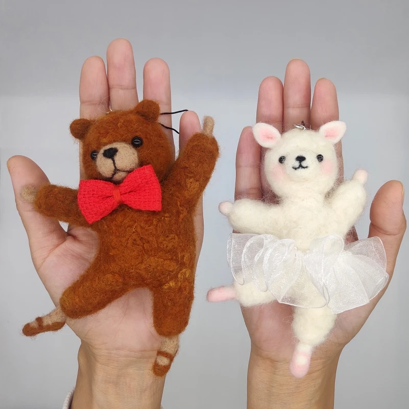 Мини Танцы медведь и овечьей кожи иглы комплекты валяния 5 "x 3" (12,5x7,5 см), сделай сам, шерсти, подарок, животных комплекты валяния для начинающих
