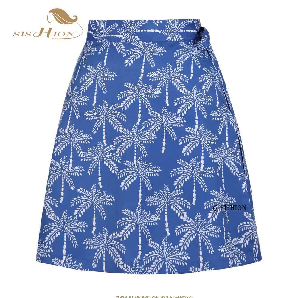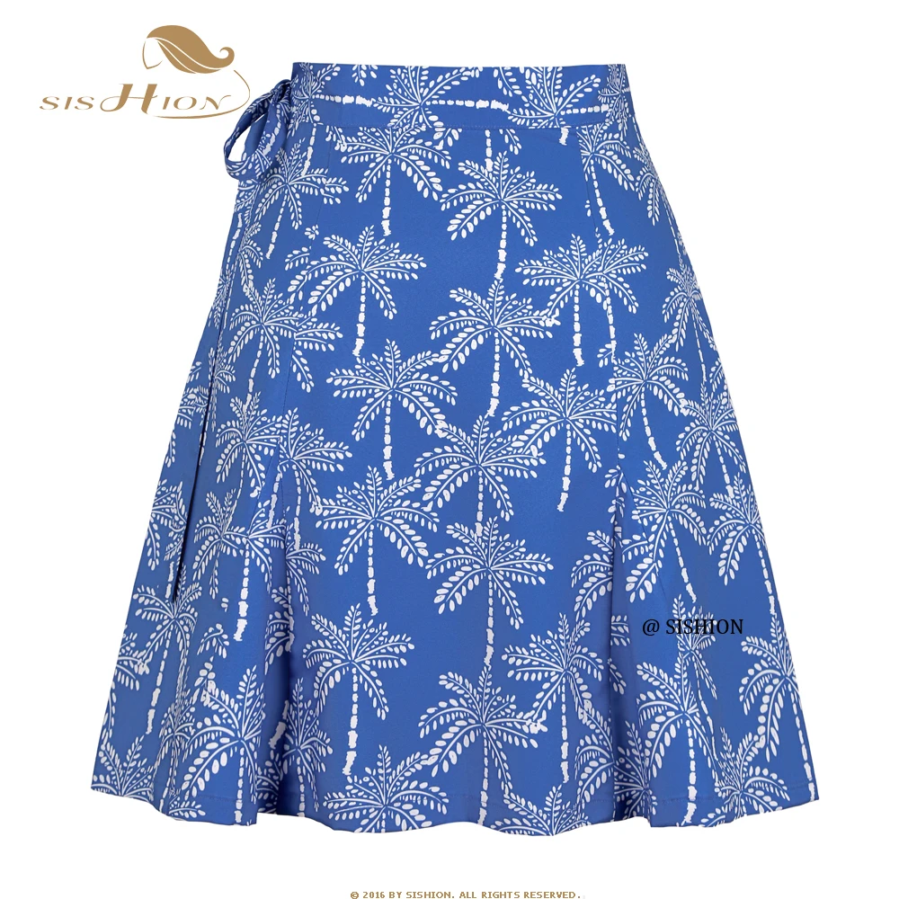 Синяя тропическая летняя юбка с принтом пальм SS0015, Женская быстросохнущая Спортивная юбка большого размера плюс