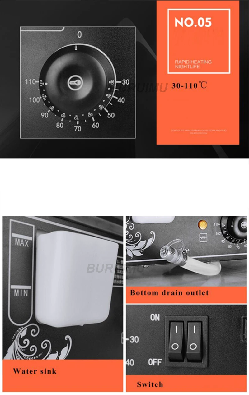 Модель: ASQ-500 Размер: 380*400*745 мм Вес: 32 кг Напряжение: 220 В Мощность: 1200 Вт Диапазон температур: 30-110 ℃ Номинальная мощность: 50-60 Гц