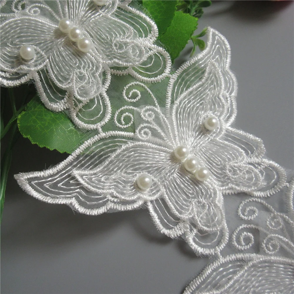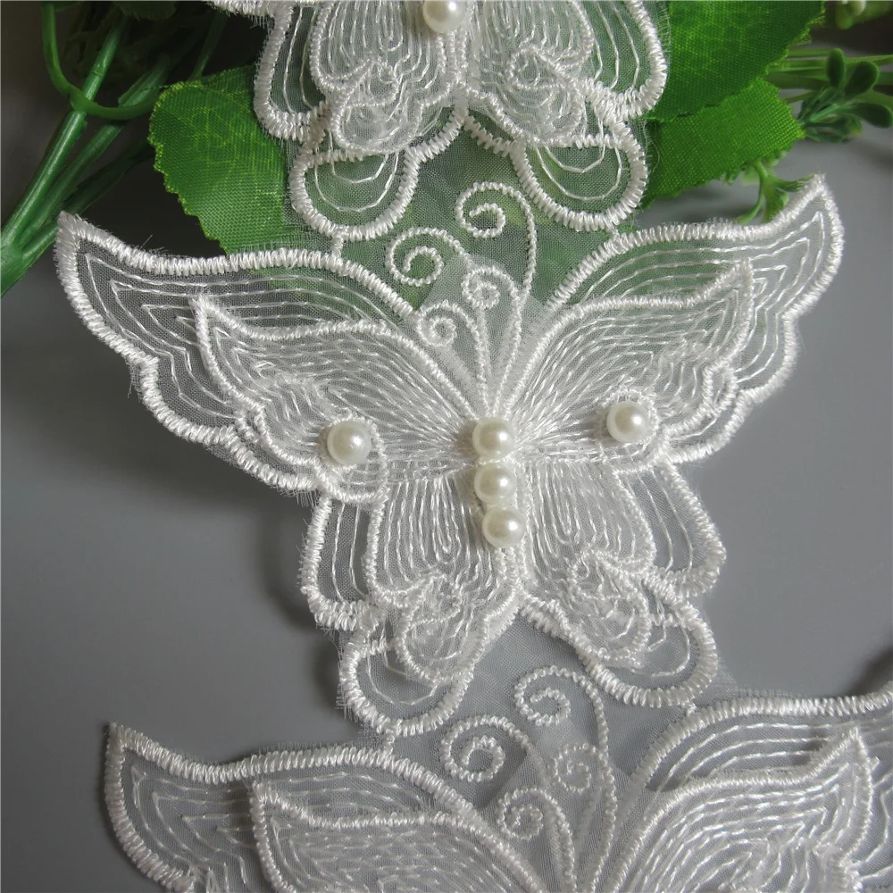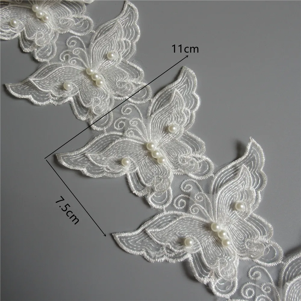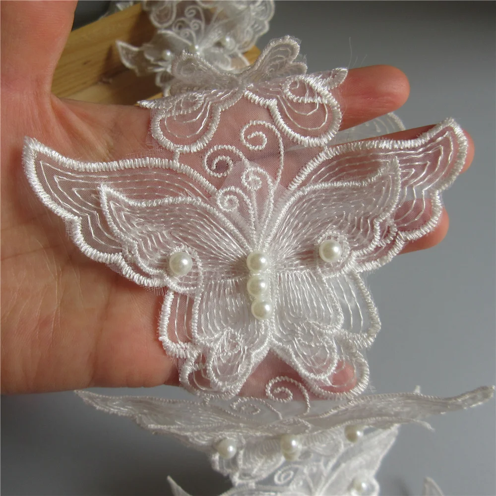 100% Фирменная Новинка и высокое качествоТонкая работа, красивая и деликатная.Цвет: белыйМатериал:Полиэстер, сетка, жемчугШирина: 11 см (4,33 ")Каждая бабочка Размеры: 11 см x 7,5 смДлина: 1 ярд = 91 см (1 ярд имеет около 13-14 бабочек)