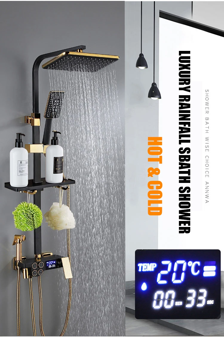 Цифровой набор для душа, умная термостатическая Душевая система, настенное крепление, смеситель горячей и холодной воды, смеситель для ванны, квадратная головка, спа, дождевой Душ