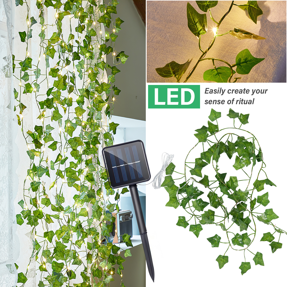 -Украсьте свой сад этими великолепными солнечными огнями плюща! -- Идеально подходит для украшения заборов, беседок и ограждений, они так универсальны для любой области, которую вы выберете -Просто оставьте зарядку под прямыми солнечными лучами и посмотрите, как ваш сад освещается ночью -Они включаются автоматически, поэтому нет необходимости включать или выключать их! С 20/50/100 светодиоды принесут любой скучный пространство для жизни