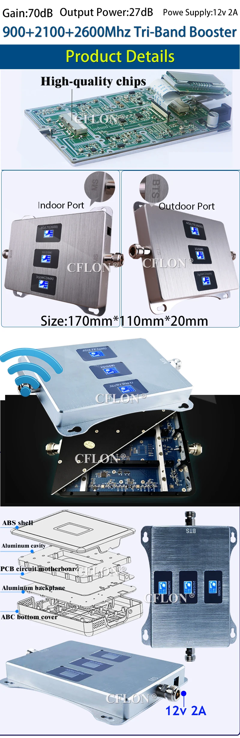 Многополосный сотовый телефон усилитель 900 2100 2600 МГц Сотовый усилитель 4G ретранслятор сигнала GSM 2G 3G 4G мобильный телефон усилитель сигнала LTE DCS WCDMA