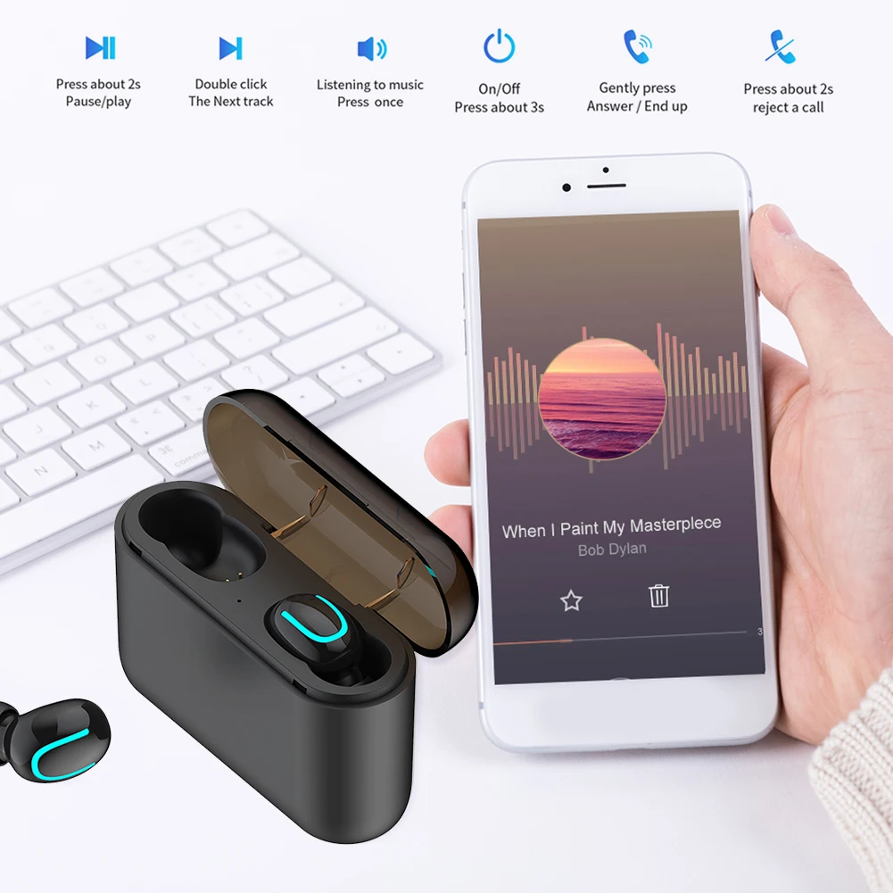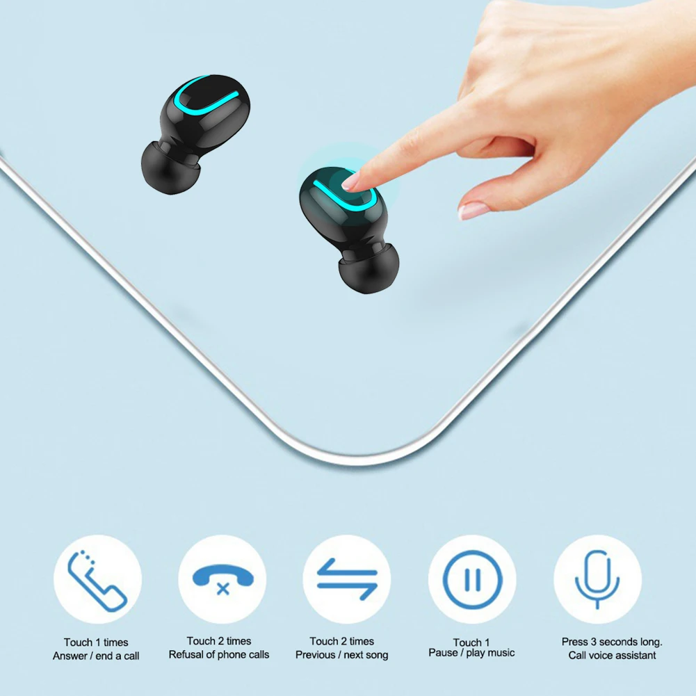 02:A7SМини Bluetooth совместимым 5,0 вкладыши Наушники True Беспроводной Touch Управление наушники-вкладыши TWS стерео наушники с микрофоном зарядный чехол
