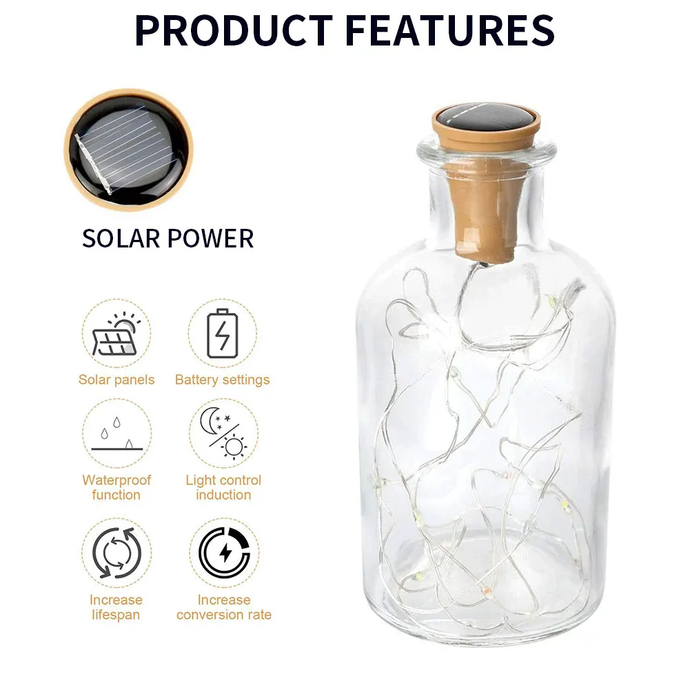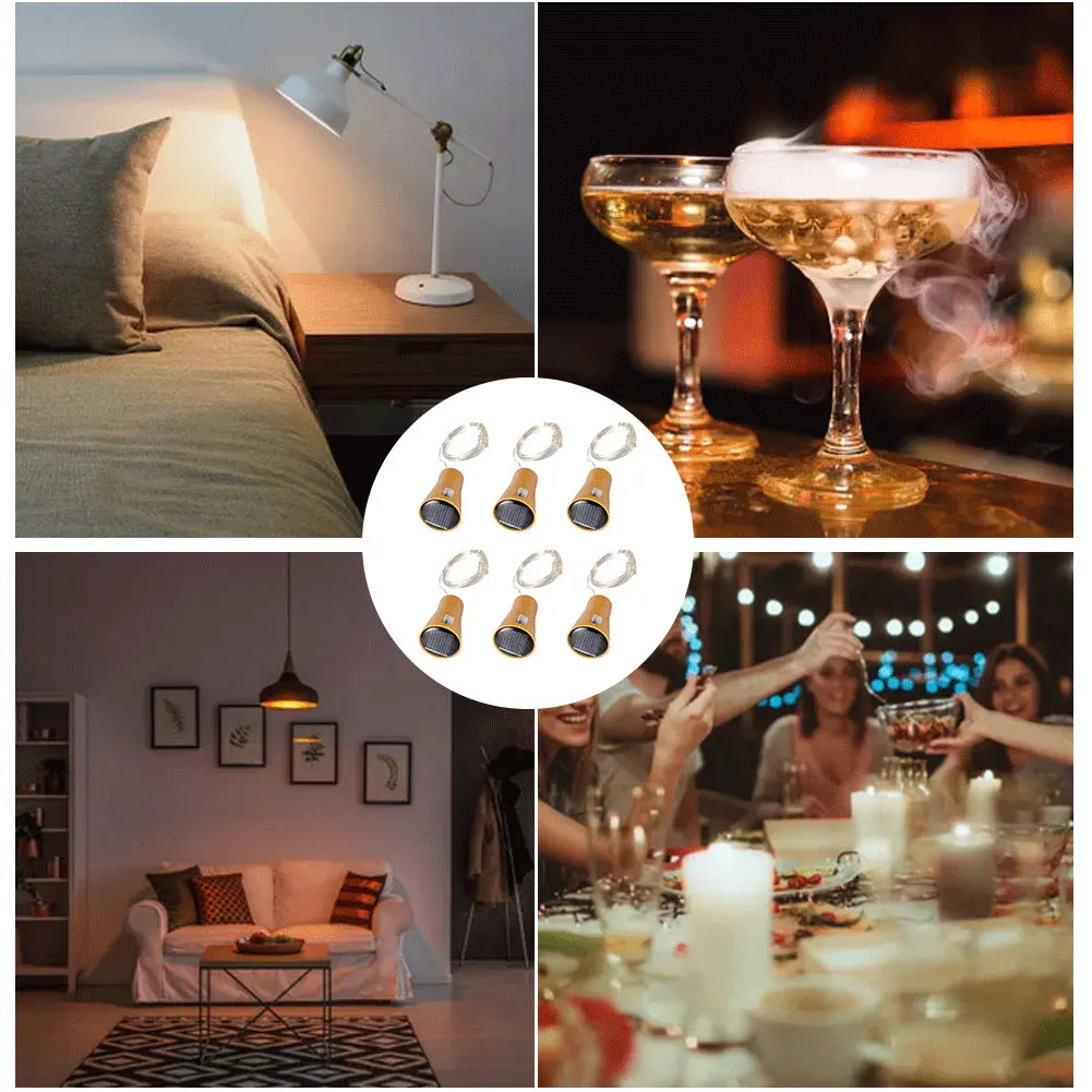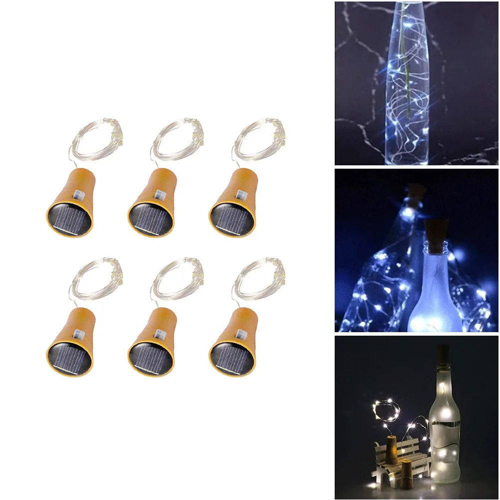 6 шт., светильник для бутылки s, пробка для вина, светодиодный солнечный Сказочный светильник, 20 светодиодов, вечерние украшения для свадьбы, Рождества, Хэллоуина