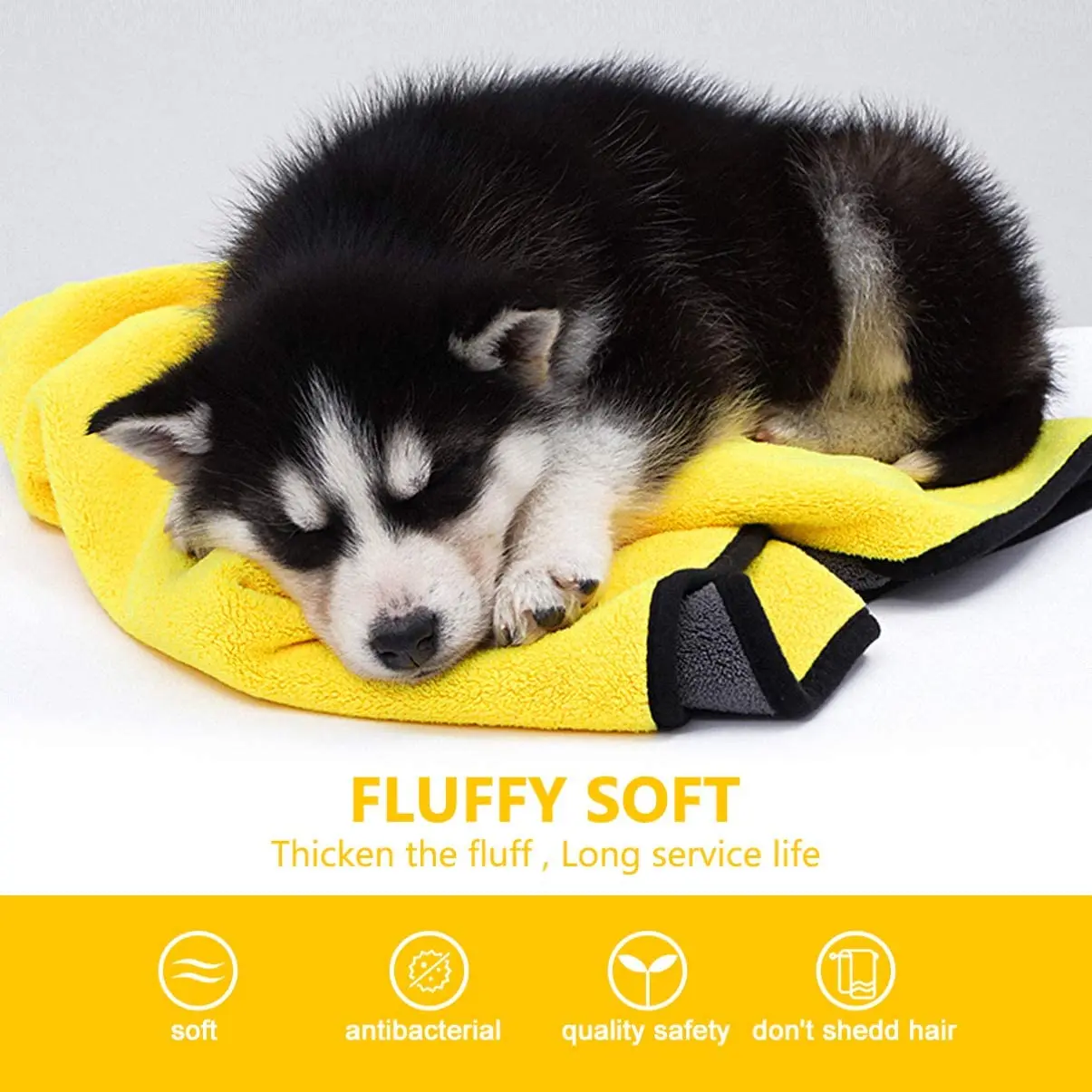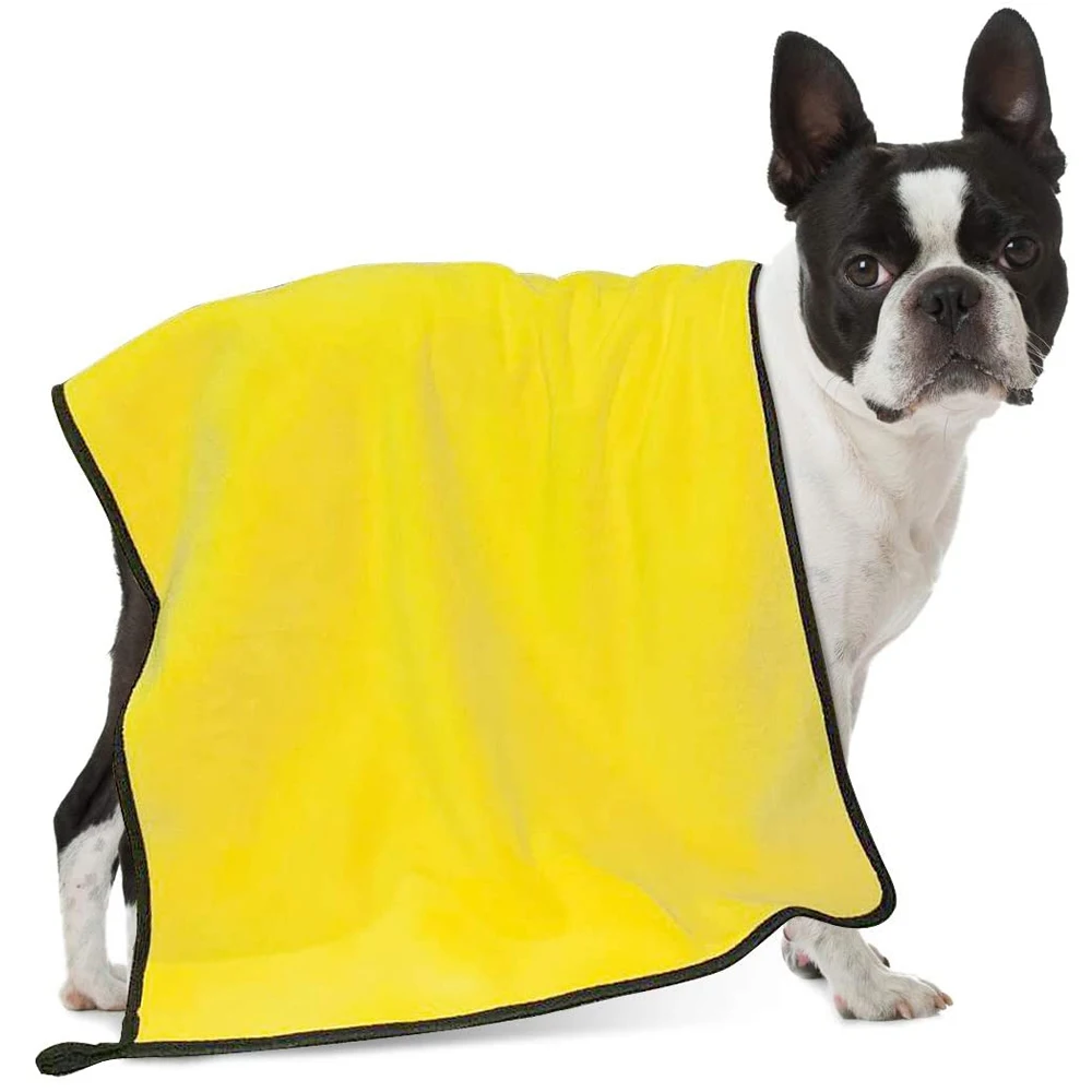Название: банные полотенца для домашних животных Цвет: желтый и темно-серый Материал: волокно Размер: XS: 30*30 см S: 30*60 см M: 40*60 см L: 55*100 см XL: 70*140 см Вес: XS: 50g S: 95 г М: 120 г L: 300 г XL: 500 г Использование продукта: сухие волосы домашних животных, мытье автомобиля, домашняя чистка.