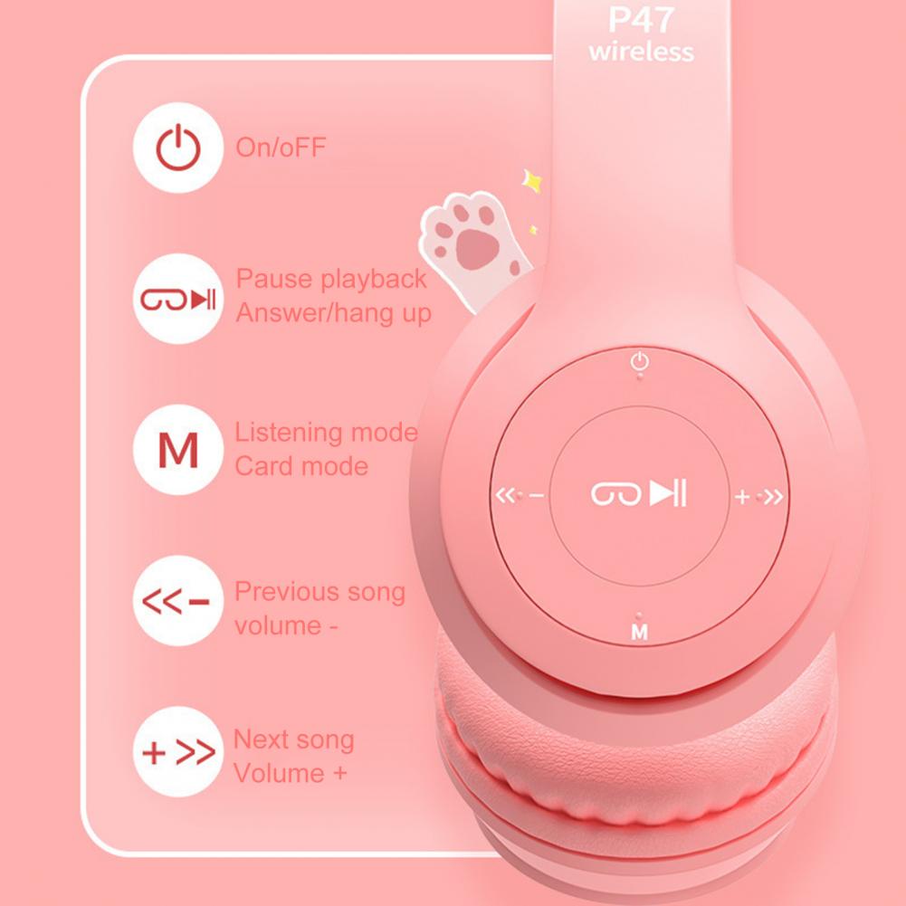 P47 наушники Bluetooth 5,0 светящиеся кошачьи уши форма беспроводная гарнитура для путешествий