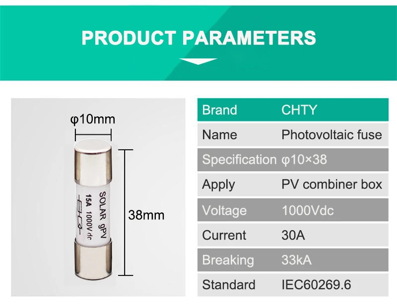 Ряд предохранителей в 10x38мм посылка специально разработана для защиты и изоляции фотоэлектрических струн.