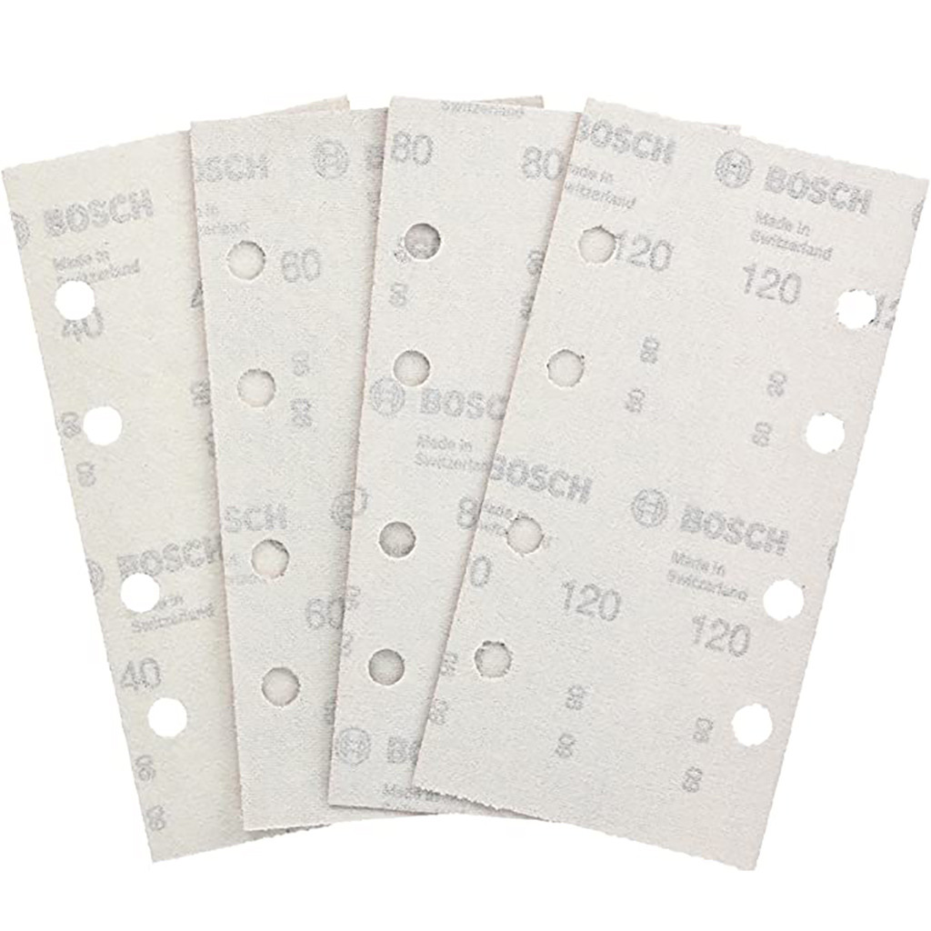 Einsatzgebiete: Geeignet für Hart- und Weichholz, Holzwerkstoffe, Spanplatten und Metall Lieferumfang: Je 5 Stück 93x185 мм koornung 40/60/80, 10 Stück 93x185 мм koornung 120 Kompatibilität: Für Schwingschleifer der meisten Elektrowerkzeugmarken Универсальный-Schleifblätter Mit Kletthaftsystem für sicheren Halt und schnelen Blattwechsel Abmessung: 190 X 98x25 мм