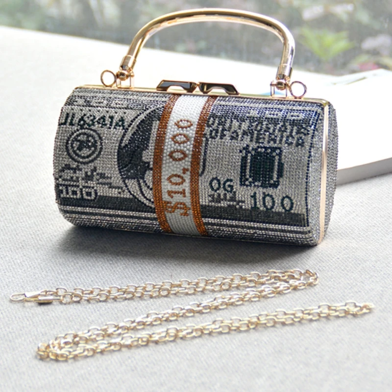 Особенности: 【уникальный дизайн элементов: Эта женская вечерняя сумочка имеет дизайн с очень популярными элементами банкнот в долларах США, с новыми особенностями, общий внешний дизайн уникален и изысканен, позвольте вам быть более ослепительным в толпе, показать Модный женский шарм.