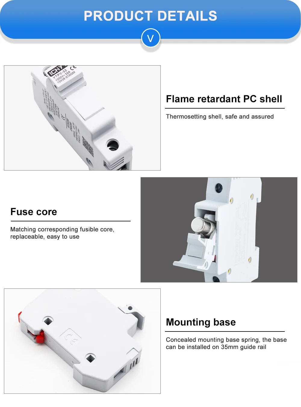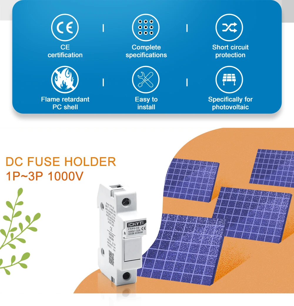 CHYT YTPV-32 2P фотоэлектрический Солнечный предохранитель постоянного тока 1000 В для защиты солнечной системы без индикатора