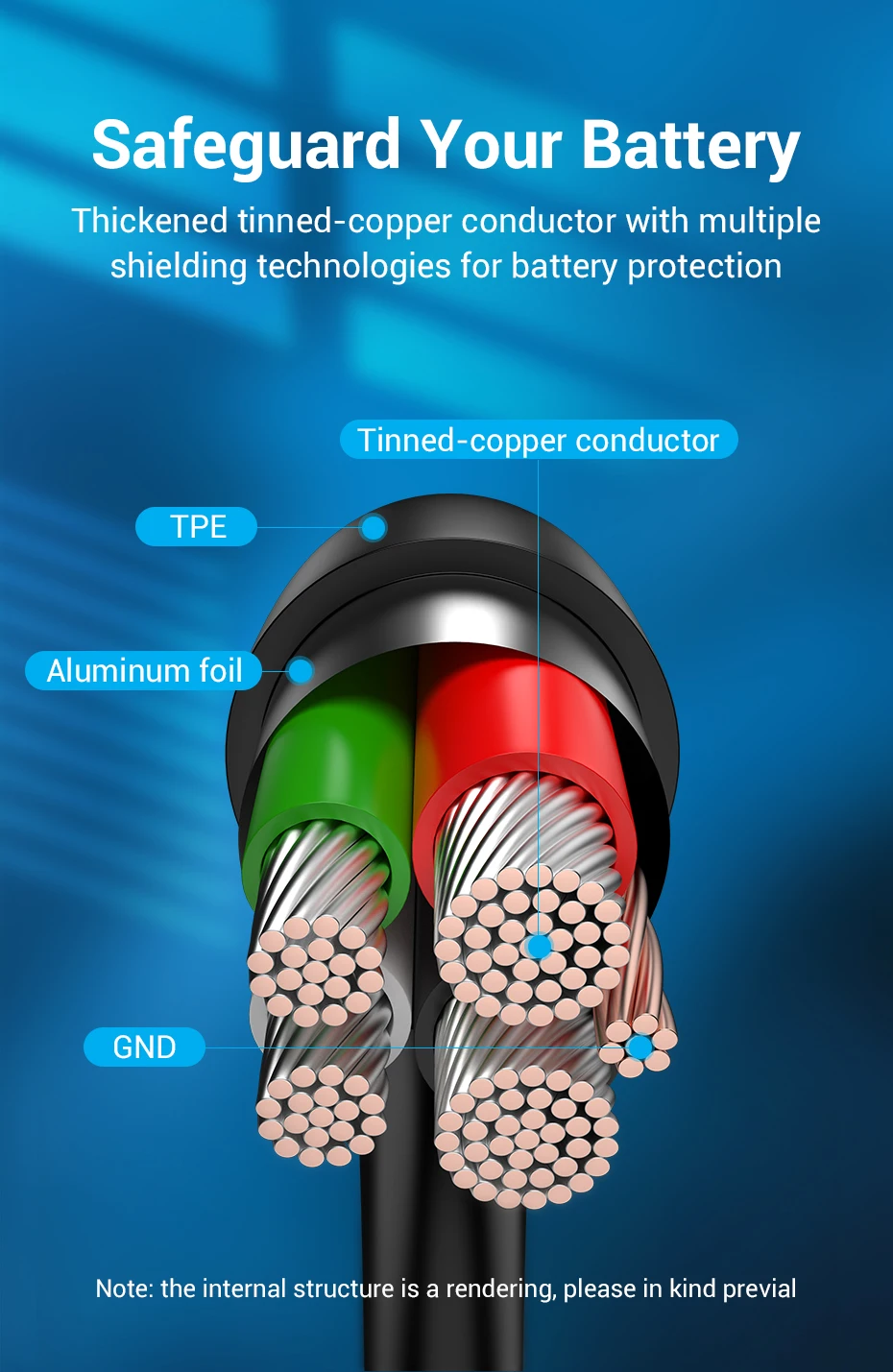 Утолщенный луженый медный проводник с множеством технологий экранирования для защиты аккумулятора