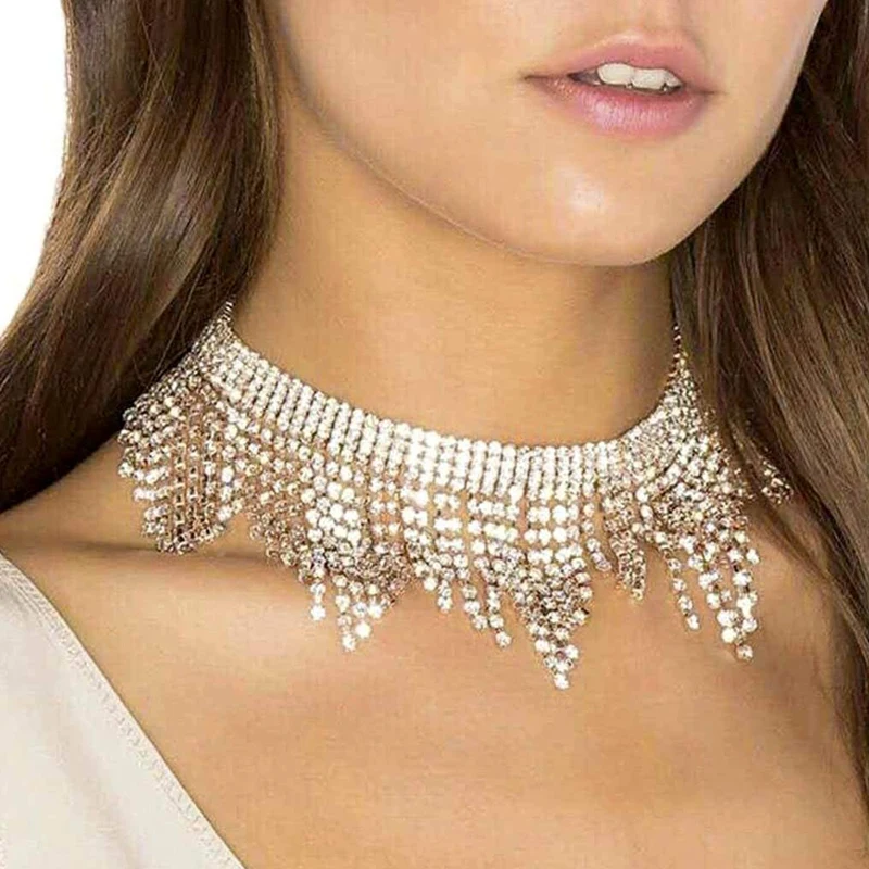 Великолепные Украшения для костюмов 80s. Ожерелье-чокер с бахромой и кристаллами, стразы. Эффективный и резкий.