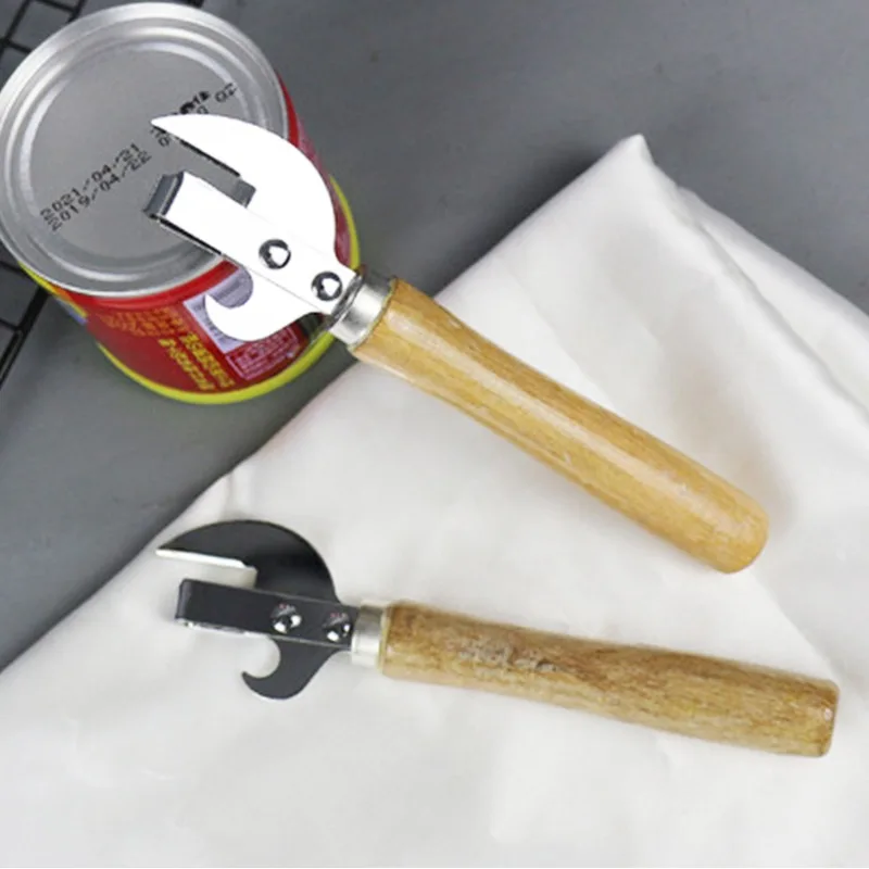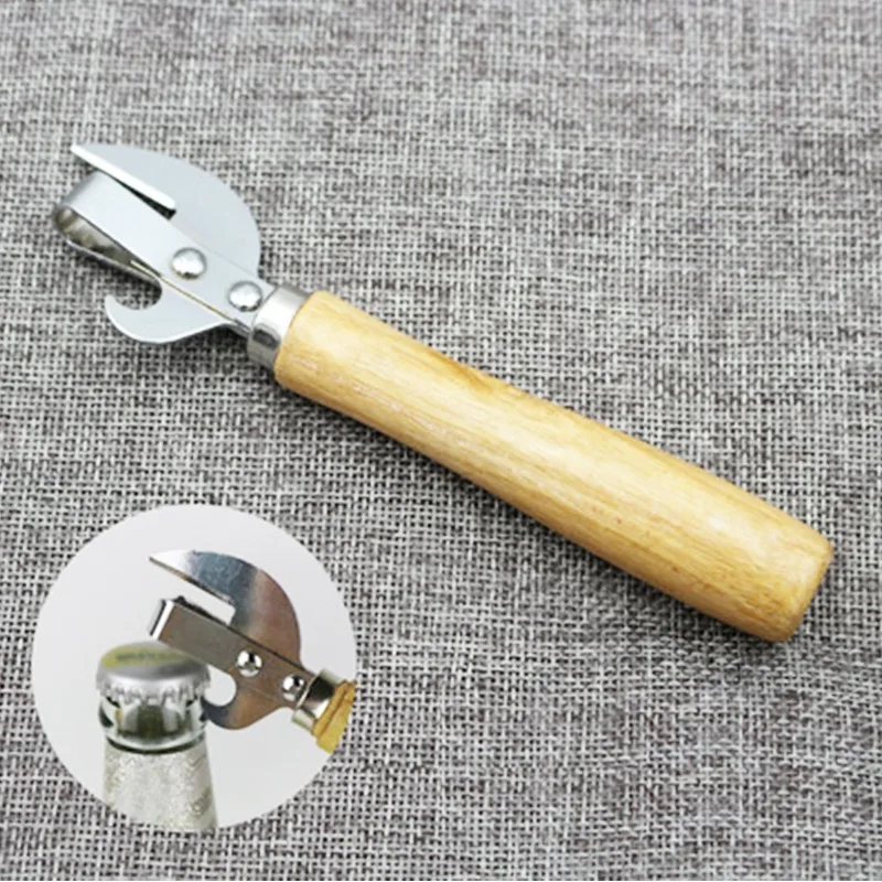 <Эргономичная ручка: Этот консервный нож является прочным и практичным, деревянная ручка удобна и обеспечивает надежное сцепление при использовании.