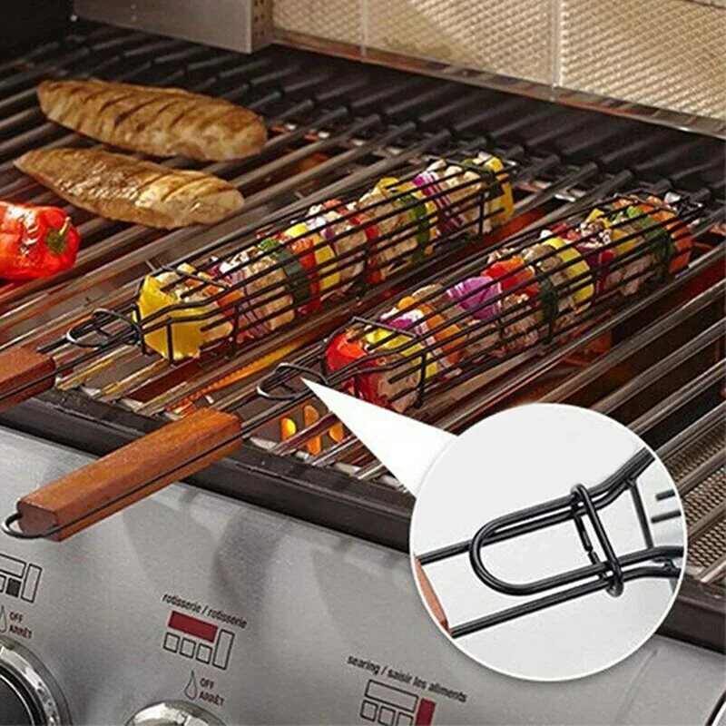 <Практичность: Блокировка корзин надежно удерживает еду на месте и гарантирует, что она не согнется или не сломается. Нет необходимости в шампуре или работе, связанной с изготовлением кабобов. Корзина для гриля для овощей делает гриль легким и веселым.