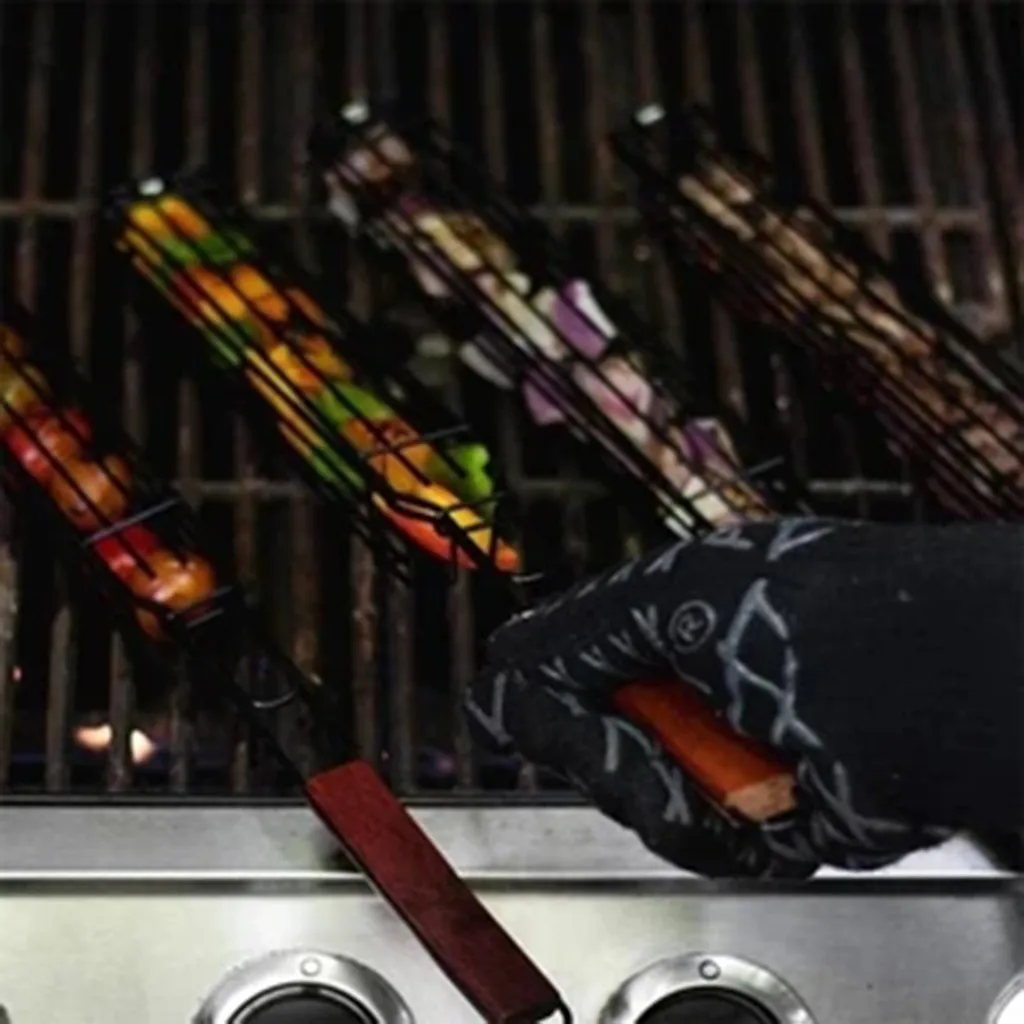 Изготовлен из тяжелой стали с антипригарным покрытием. В отличие от обычного барбекю Шампуры, эти цельнометаллические корзины крепкие и никогда не горят.