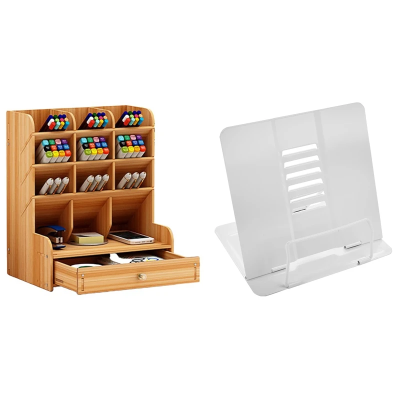 1 шт. белый офисный/школьный книжный стенд и 1 шт. деревянный 13 решетчатый Настольный кронштейн