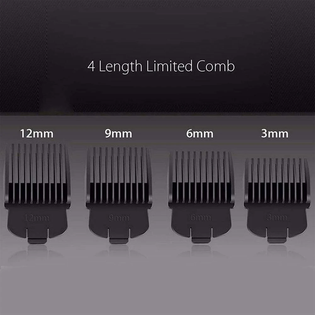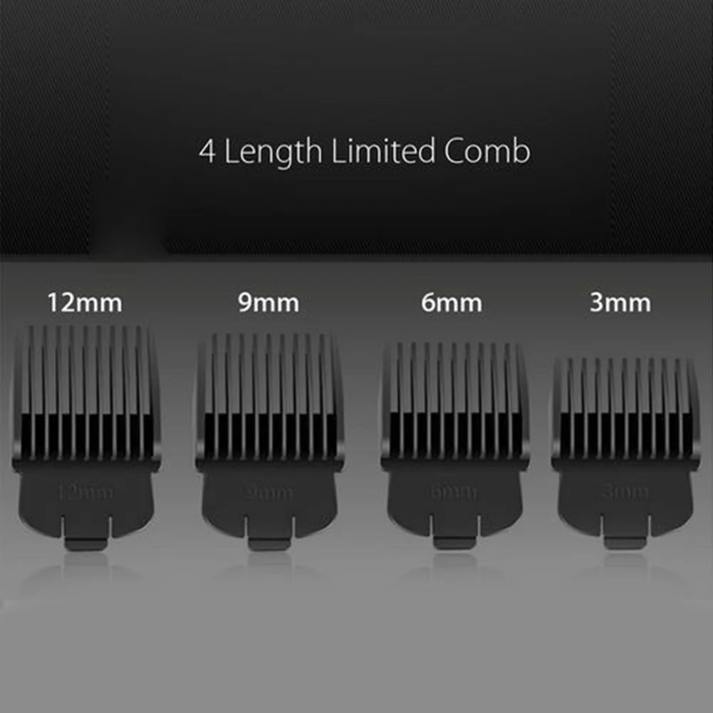 3. Расческа для позиционирования: четыре направляющих гребня (3 мм, 6 мм, 9 мм и 12 мм) в длину, легко сочетающиеся с различными длинами волос.