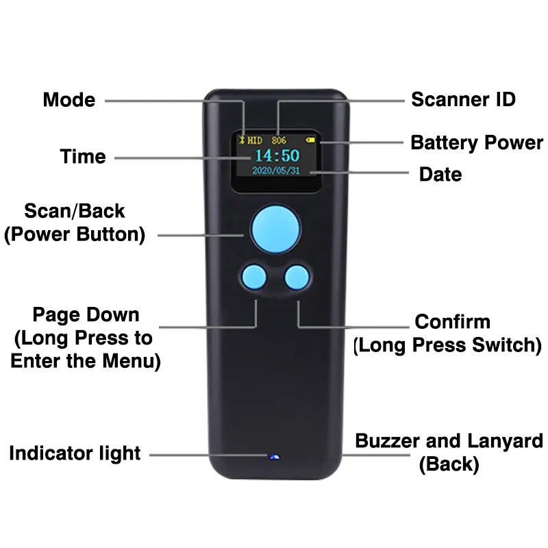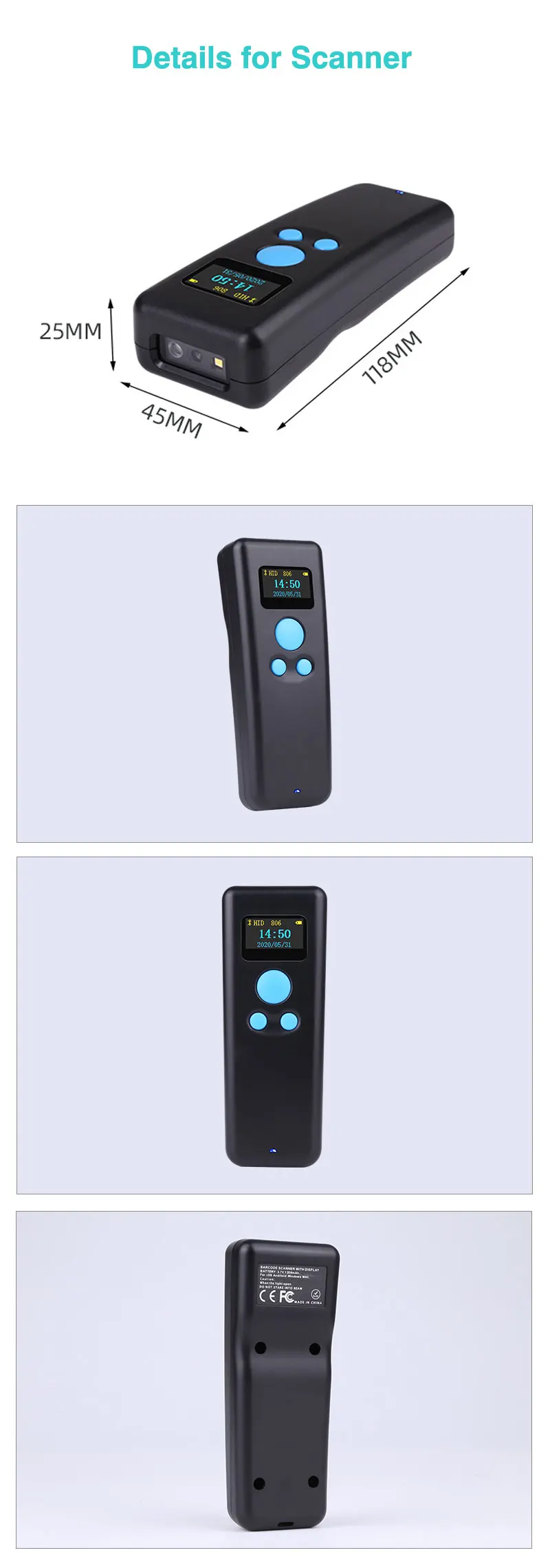 Этот сканер штрих-кода 1D bluetooth может использоваться через Bluetooth для подключения к iPhone, Android, ipad и планшету. Беспроводной сканер штрих-кода через 2,4G USB dongle подключается к ПК, компьютеру, ноутбуку. Сканер штрих-кода USB через usb-кабель легко подключается к ПК, компьютеру, ноутбуку, подключи и играй, не нужно устанавливать какое-либо программное обеспечение.