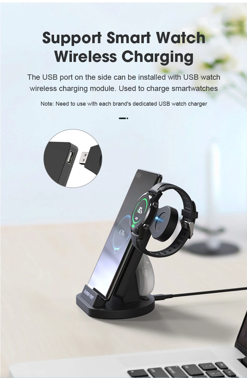 Описание продукта: 【Двойной режим зарядки 】поддержка магнитного заряда и беспроводной зарядки, магнитный режим может поддерживать huawei 66 Вт Max super charge,Xiaomi Turbo charge,oppo super VOOC с оригинальным зарядным устройством для телефона【Для Airpods & huawei часы】 4 в 1 беспроводная зарядная станция для наручных часов Apple Watch Series 5/4/3/2/1, для Airpods 2, Airpods pro, для huawei watch GT/GT 2e/honor magic/magic watch 2/honor watch GS pro/GT2/watch 3 pro/GT3/Galaxy Buds.【Case friendly】беспроводное зарядное устройство заряжается через большинство чехлов для телефонов толщиной до 6 мм, не нужно снимать чехол с телефона. Снимите магнитные или металлические насадки с телефона.【Безопасная зарядка 】 встроенные гарантии от перезаряда, защиты от перегрузки по току и перенапряжения, контроля температуры, обнаружения посторонних предметов. Защищает аккумулятор вашего устройства от избыточного заряда. F【 Противоскользящий дизайн и многофункциональное наблюдение 】: мощный магнитный фиксированный, и Зарядная база с противоскользящим силиконовым дизайном, так что зарядное устройство не будет двигаться и не переворачиваться, чтобы ваш телефон был защищен при зарядке. Беспроводное зарядное устройство 4 и 1 поддерживает вертикальную или горизонтальную беспроводную зарядку с углом наклона для лучшего просмотра видео или отслеживания информации во время зарядки.【Беспроводная зарядка】подставка для беспроводного зарядного устройства может заряжать ваш iphone, часы и наушники одновременно. Попрощайтесь с грязными шнурами, не нужно больше длинных избыточных кабелей, сделайте свой стол и тумбочку аккуратно и аккуратно.