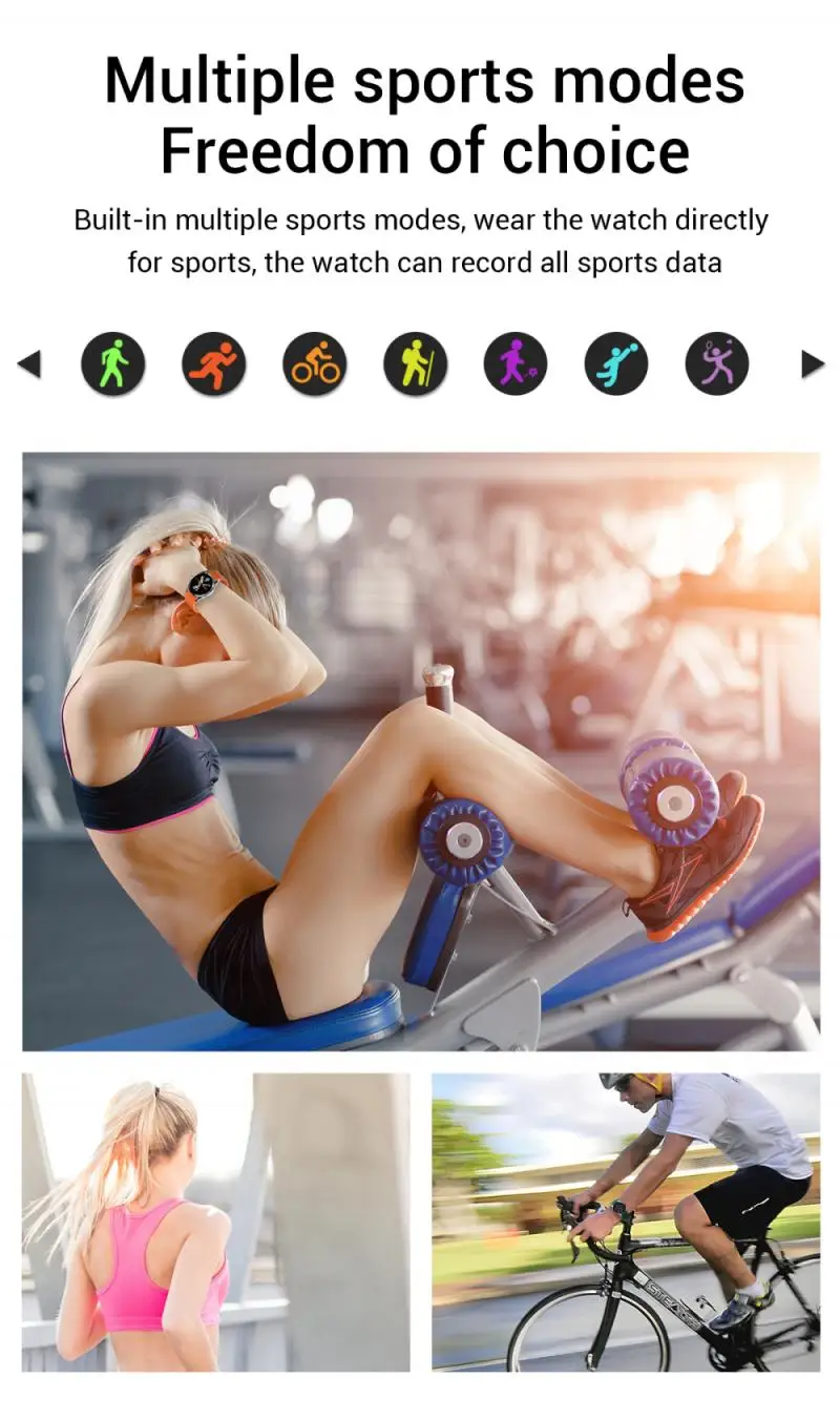 Встроенные несколько спортивных режимов. Часы можно носить непосредственно для занятий спортом. Часы могут записывать все спортивные данные.
