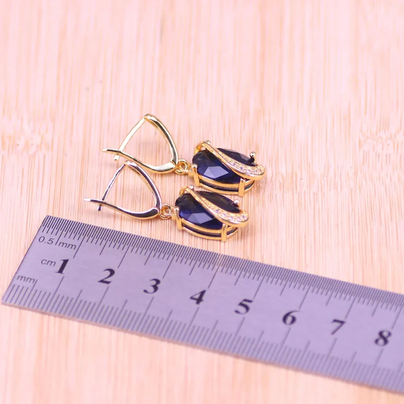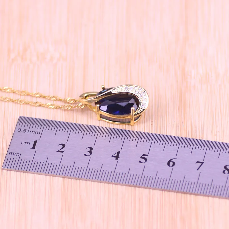 Большая Акция Большой овальный синий циркон 18K розовое золото комплект ювелирных изделий для женщин серьги ожерелье браслет набор