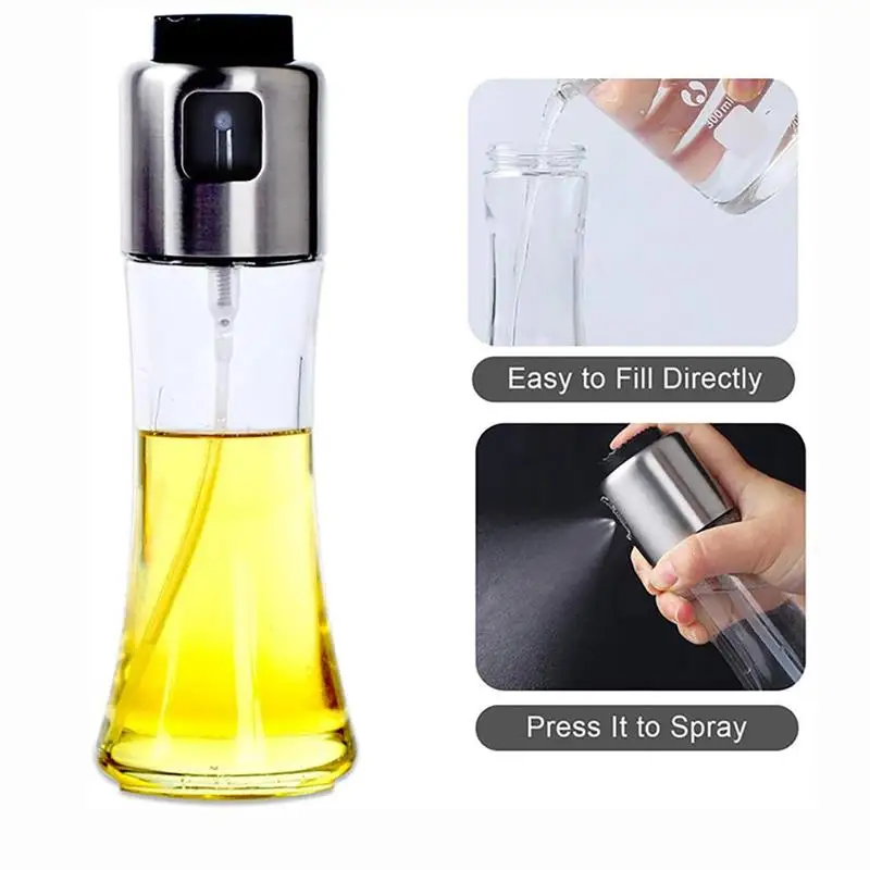 1. Верхняя крышка изготовлена из высококачественной нержавеющей стали 304, а корпус бутылки-прозрачная стеклянная бутылка для пищевых продуктов. Распылитель масла является полностью экологически чистым.
