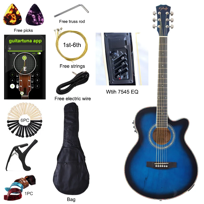 Народная гитара электрическая акустическая гитара тонкий корпус гитара народная электрическая гитара 40 дюймов Акустическая электрическая гитара Бесплатная сумка аксессуар